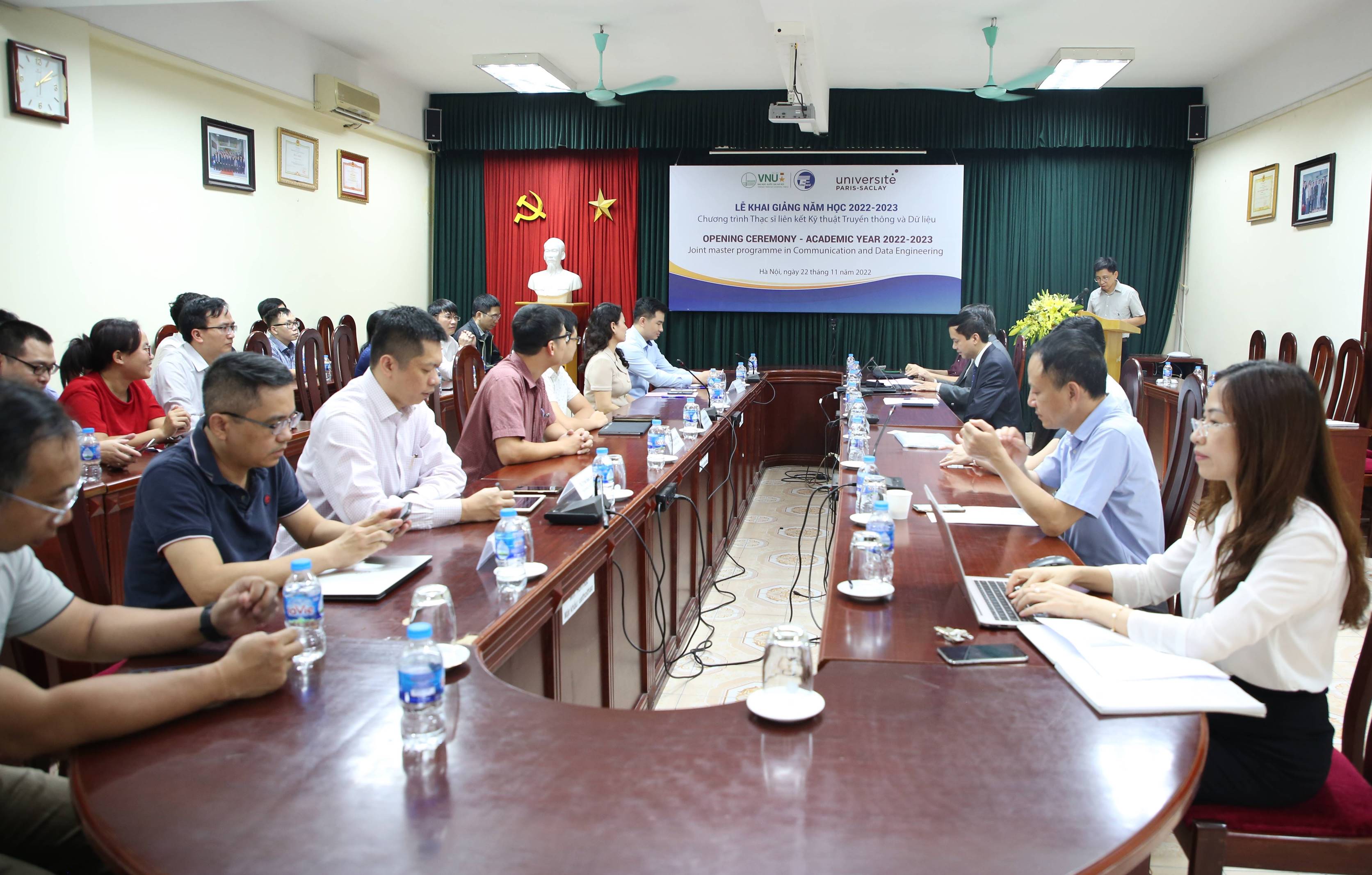 Ngày 22/11/2022, Trường Đại học Công nghệ, Đại học Quốc gia Hà Nội đã tổ chức Lễ khai giảng năm học 2022-2023 cho các học viên chương trình Thạc sĩ liên kết Kỹ thuật truyền thông và dữ liệu với ĐH Paris – Saclay (Pháp).