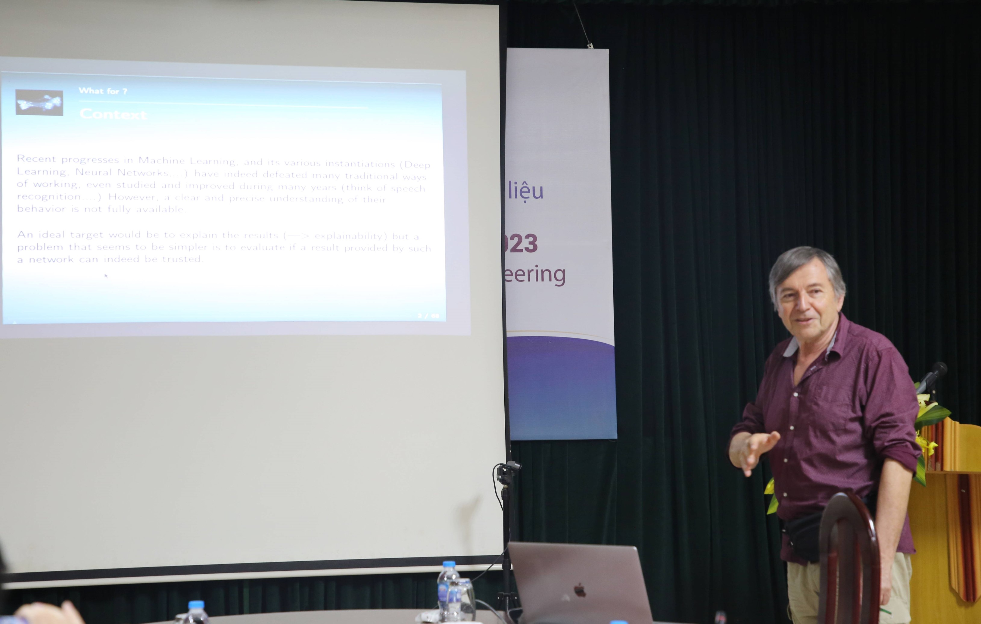 Trong khuôn khổ lễ khai giảng, GS.TSKH Pierre Duhamel – ĐH Paris-Saclay đã trình bày báo cáo “Evaluating the reliability of machine learning algorithms”.