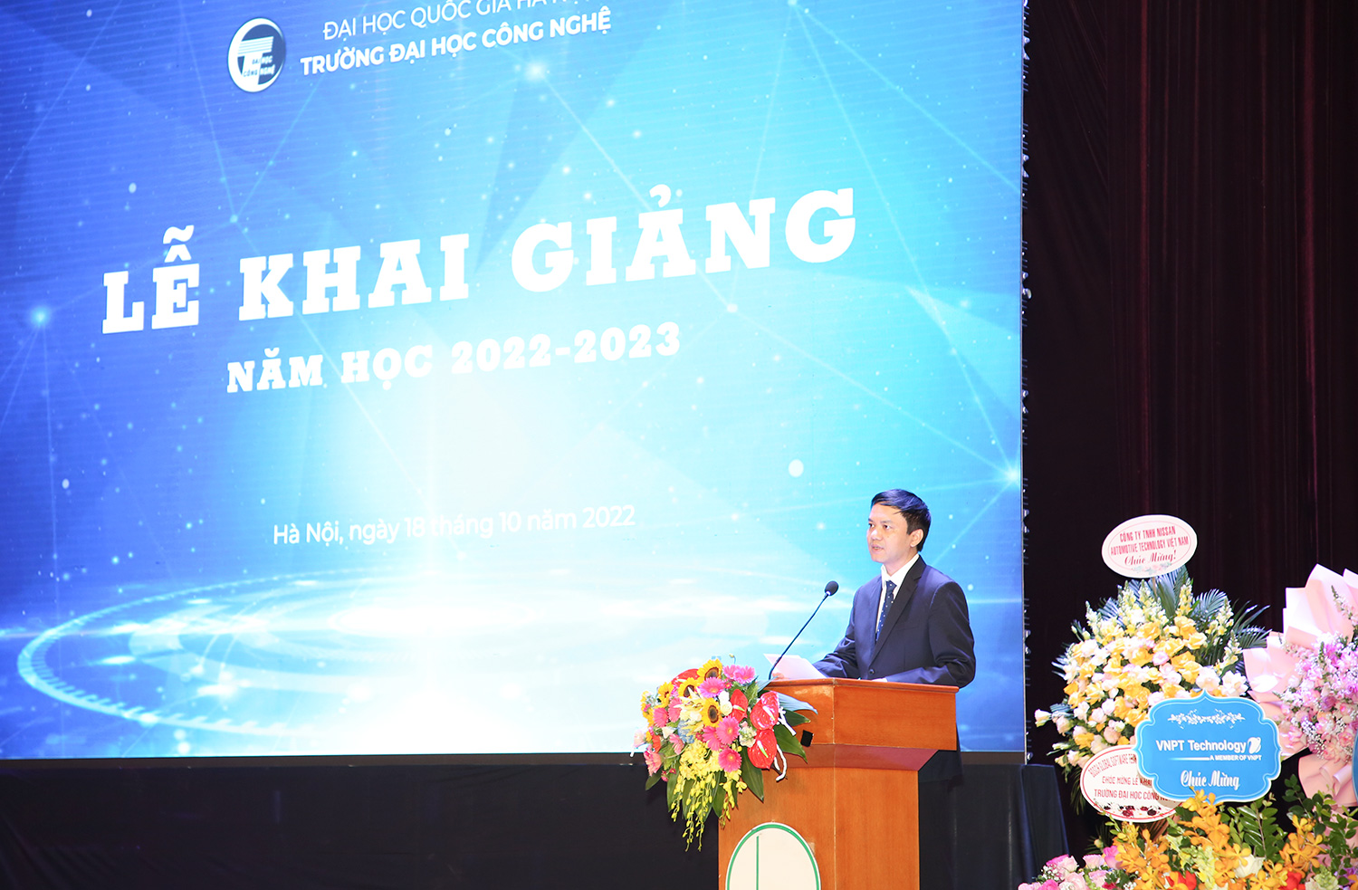 Trong diễn văn khai giảng, PGS.TS Nguyễn Việt Hà – Hiệu trưởng Trường ĐH Công nghệ đã biểu dương và chúc mừng gần 1700 tân sinh viên, 188 tân cử nhân và 17 tân thạc sĩ tham dự lễ khai giảng và nhận bằng tốt nghiệp trong dịp này. PGS đã gửi lời nhắn nhủ tới các tân cử nhân, thạc sĩ tiếp tục thể hiện khả năng, chuyên môn của mình trong chặng đường sắp tới. Hiệu trưởng mong các tân sinh viên luôn giữ lửa say mê ngày đầu nhập trường, noi gương các anh/chị khóa trước để có kết quả học tập tốt nhất. Các bạn hãy luôn giữ được xúc cảm, rung động với thế giới xung quanh mình và tìm được ý tưởng sáng tạo, ý tưởng tươi đẹp, cùng thổi hồn vào công nghệ, làm cho công nghệ kết nối vị nhân sinh. Nhà trường cam kết sẽ luôn đồng hành cùng các bạn suốt hành trình cuộc sống.