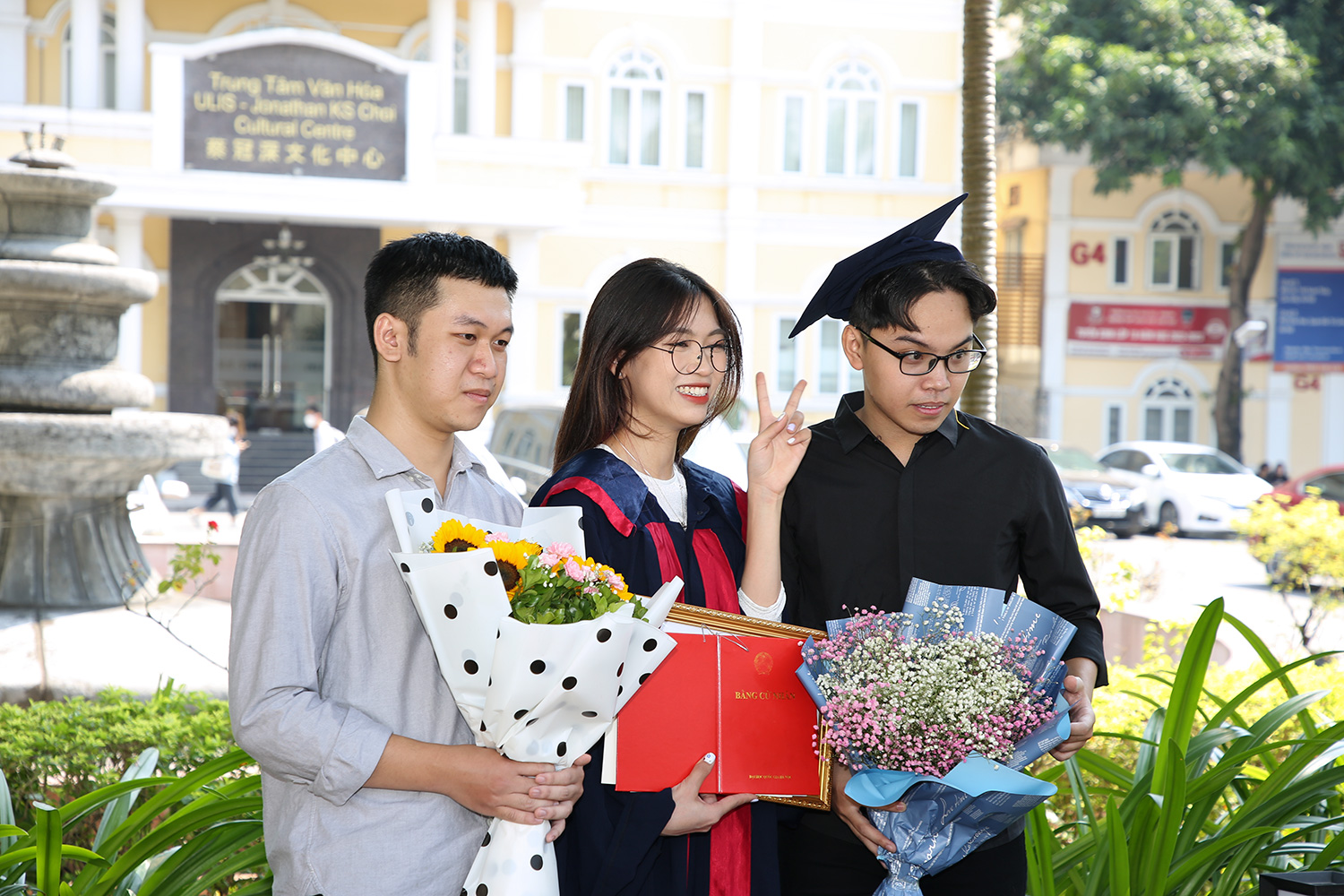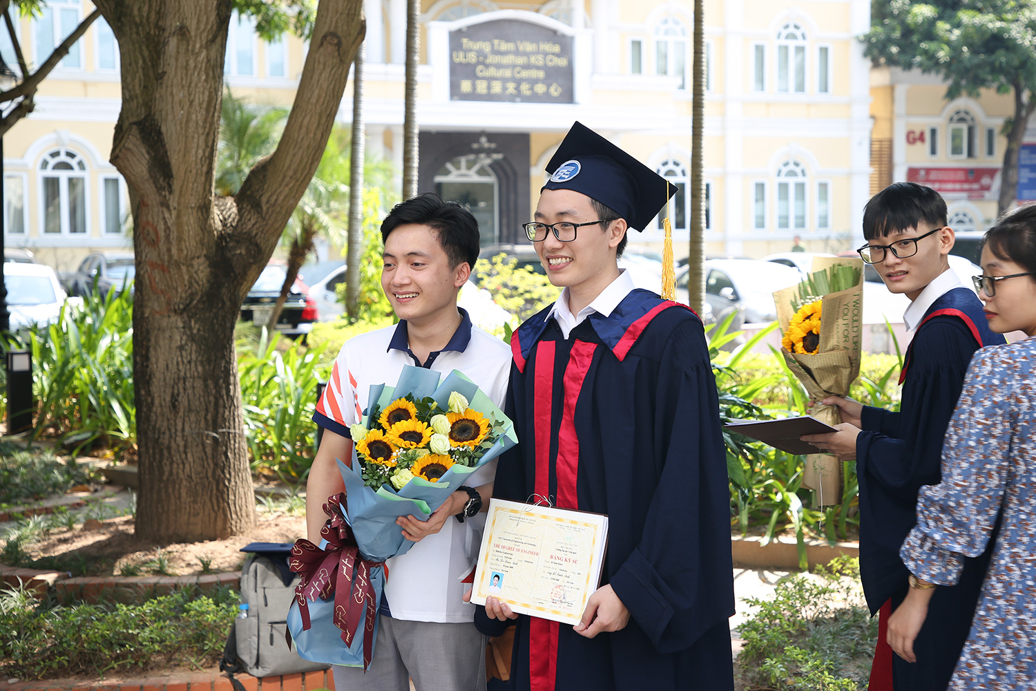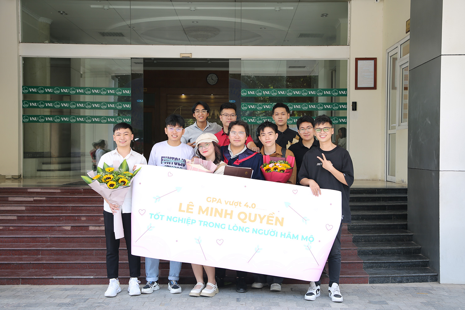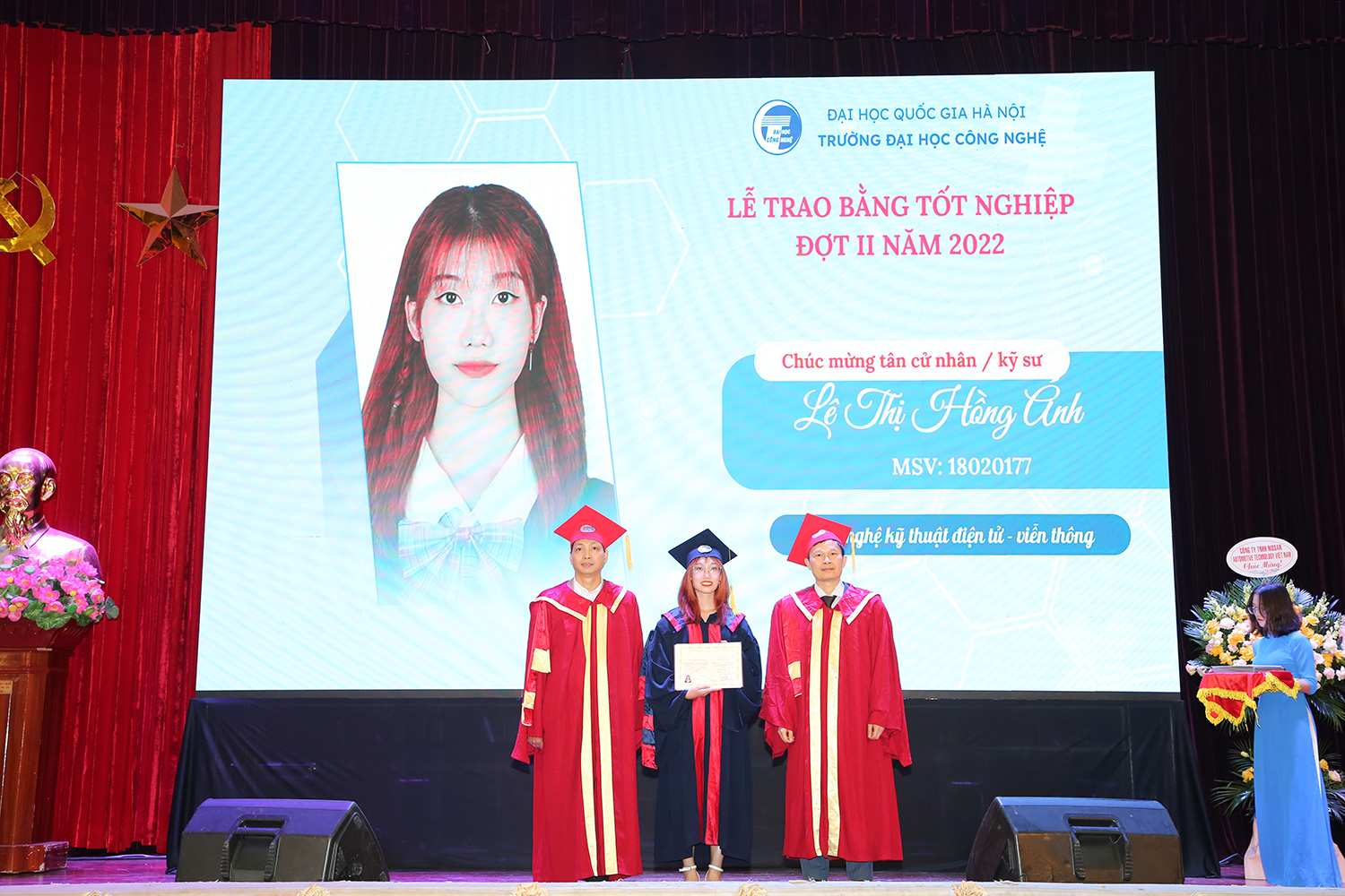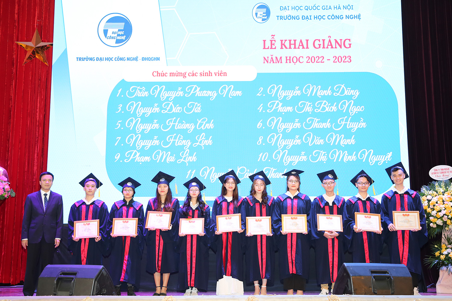 Trong tâm trạng vui mừng, phấn khởi khi được dự một buổi lễ “2 in 1”, vừa là lễ khai giảng lại vừa được nhận bằng tốt nghiệp. Thủ khoa tốt nghiệp Đinh Mai Phương (ngành Hệ thống thông tin), Nguyễn Ngọc Chi (ngành Công nghệ thông tin) thấy tự hào và hạnh phúc khi nhận bằng khen của Giám đốc Đại học Quốc gia Hà Nội và nhấn mạnh việc học tập tại trường là một quyết định đúng đắn, một hành trình đầy trải nghiệm với rất nhiều cảm xúc đáng nhớ. Việc tốt nghiệp đại học không phải là điểm kết thúc của một chặng đường mà là điểm khởi đầu cho một hành trình mới, với hành trang và tri thức được thầy cô truyền thụ để kiến tạo những giá trị cho bản thân, cho gia đình và cho xã hội. Để nhắn nhủ tới các bạn tân sinh viên K67, Ngọc Chi mong muốn “Các em hãy trải nghiệm quãng thời gian thanh xuân bằng tất cả sức trẻ, nhiệt huyết của bản thân”.
