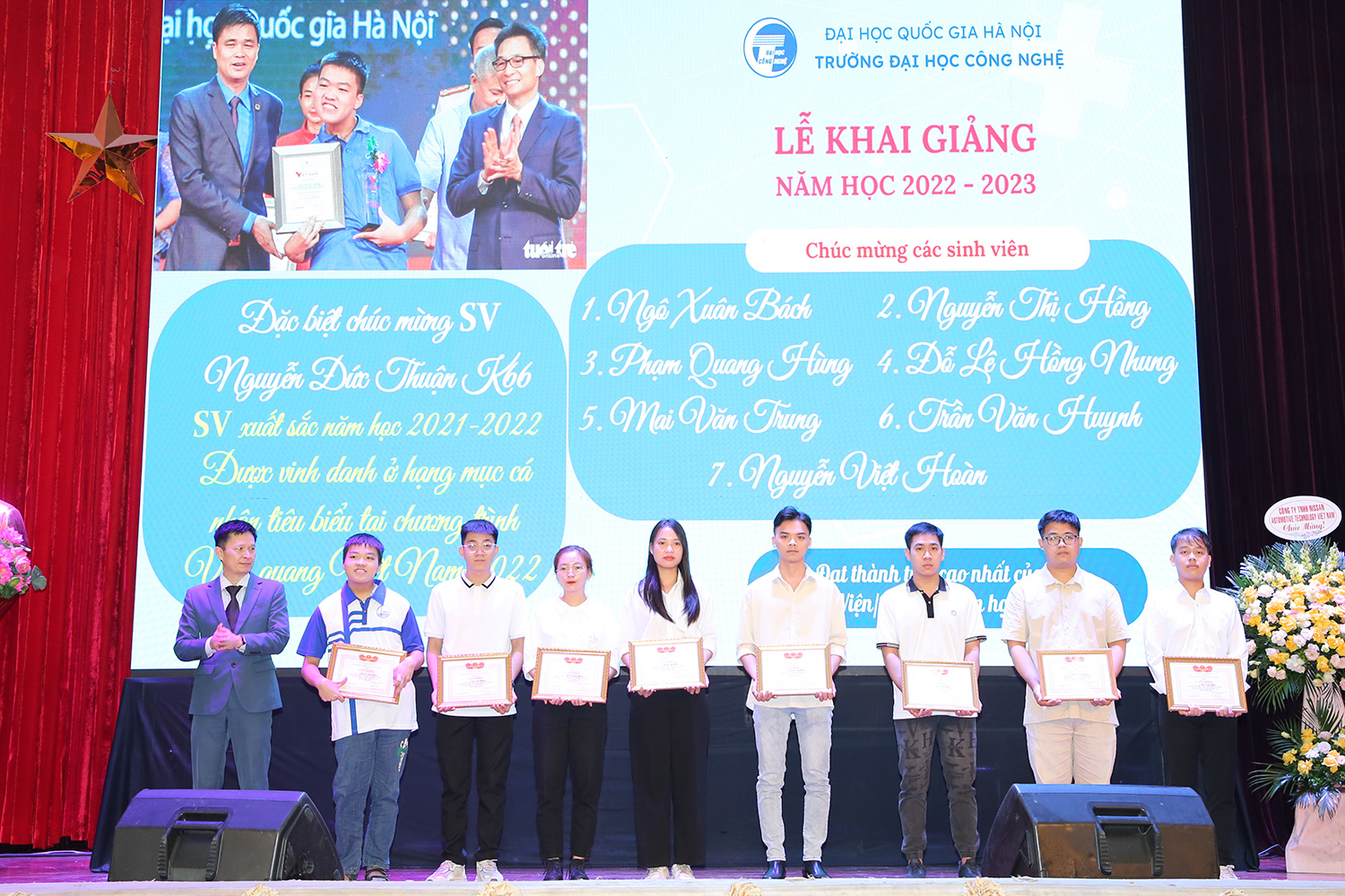 Tại Lễ khai giảng, để biểu dương các thành tích học tập của cá nhân và tập thể, lãnh đạo Nhà trường đã cấp học bổng bằng hình thức miễn giảm học phí năm học 2022-2023 cho 04 sinh viên thủ khoa đầu vào và 03 sinh viên đạt giải trong các kỳ thi quốc tế được tuyển thẳng vào Trường tại kỳ thi tuyển sinh đại học năm 2022. Đồng thời khen thưởng cá nhân, tập thể có thành tích xuất sắc nhất trong năm học 2021-2022 và sinh viên tốt nghiệp thủ khoa đầu ra, sinh viên tốt nghiệp xuất sắc.