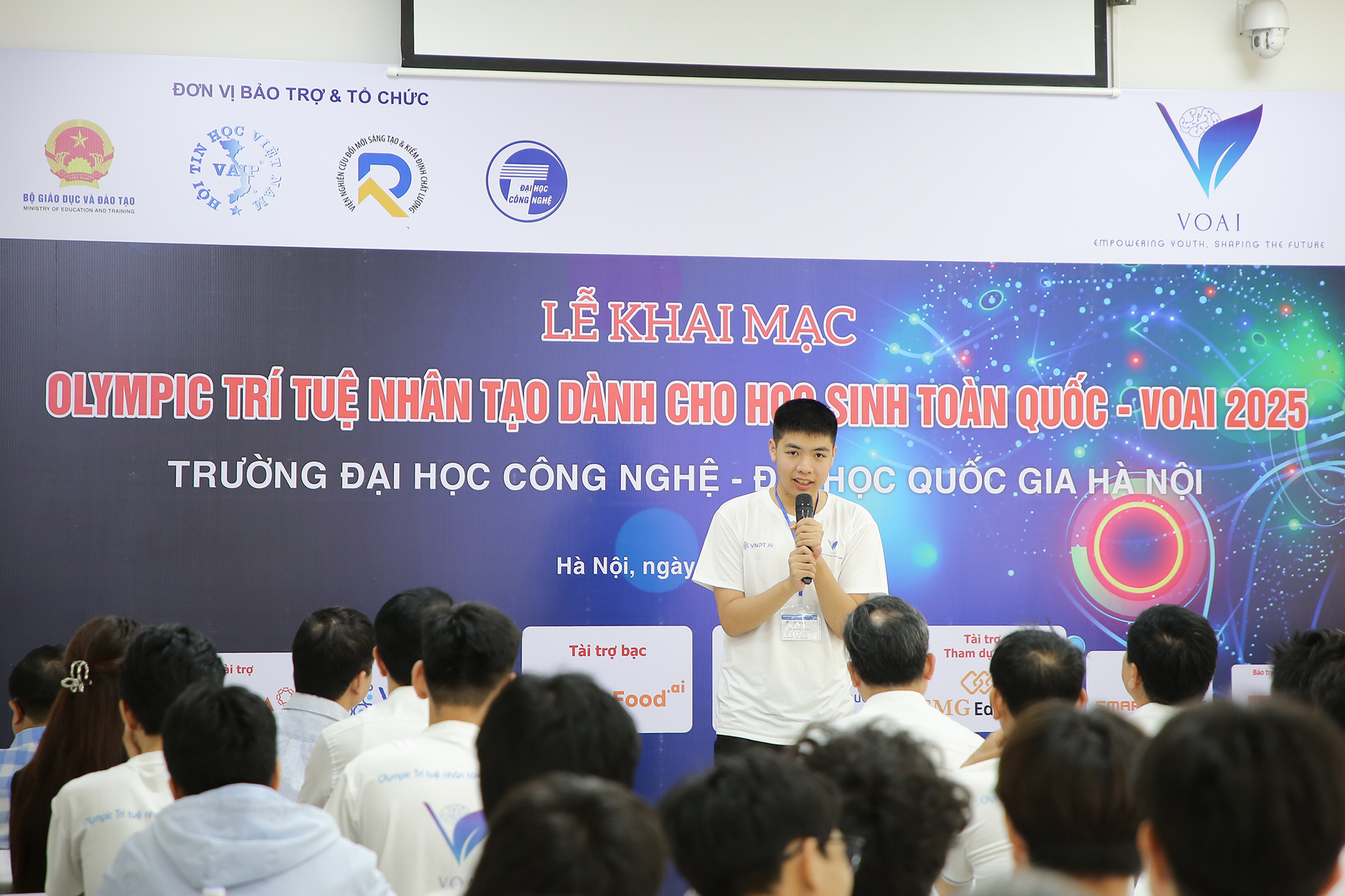Sáng ngày 1/6/2025, tại Trường Đại học Công nghệ – Đại học Quốc gia Hà Nội (VNU-UET) đã chính thức diễn ra lễ khai mạc Chung kết Olympic Trí tuệ nhân tạo dành cho học sinh toàn quốc lần thứ nhất năm 2025 (VOAI 2025) với sự tham gia của 98 học sinh đến từ 28 trường THPT tại 17 tỉnh thành cả nước cùng 4 trường THPT chuyên thuộc các trường đại học. Kỳ thi do Bộ Giáo dục và Đào tạo, Hội Tin học Việt Nam phối hợp cùng Viện Nghiên cứu đổi mới sáng tạo và kiểm định chất lượng đồng tổ chức và Trường Đại học Công nghệ đăng cai tổ chức.