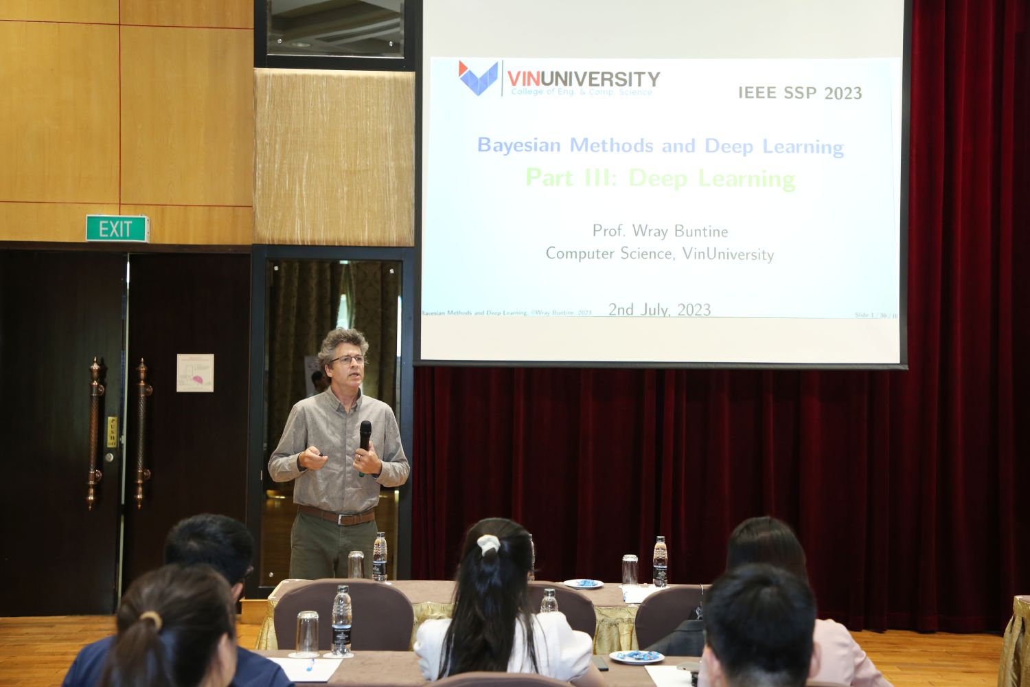 GS. Wray Buntine (Trường ĐH VinUni, Việt Nam) mở đầu buổi Tutorials với bài trình bày “Bayesian Methods andTheir Use in Deep Learning”