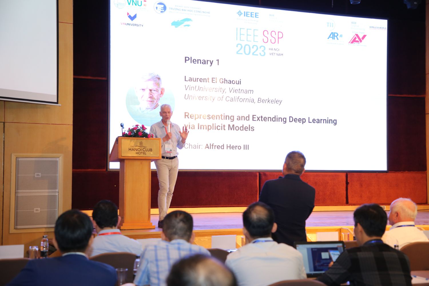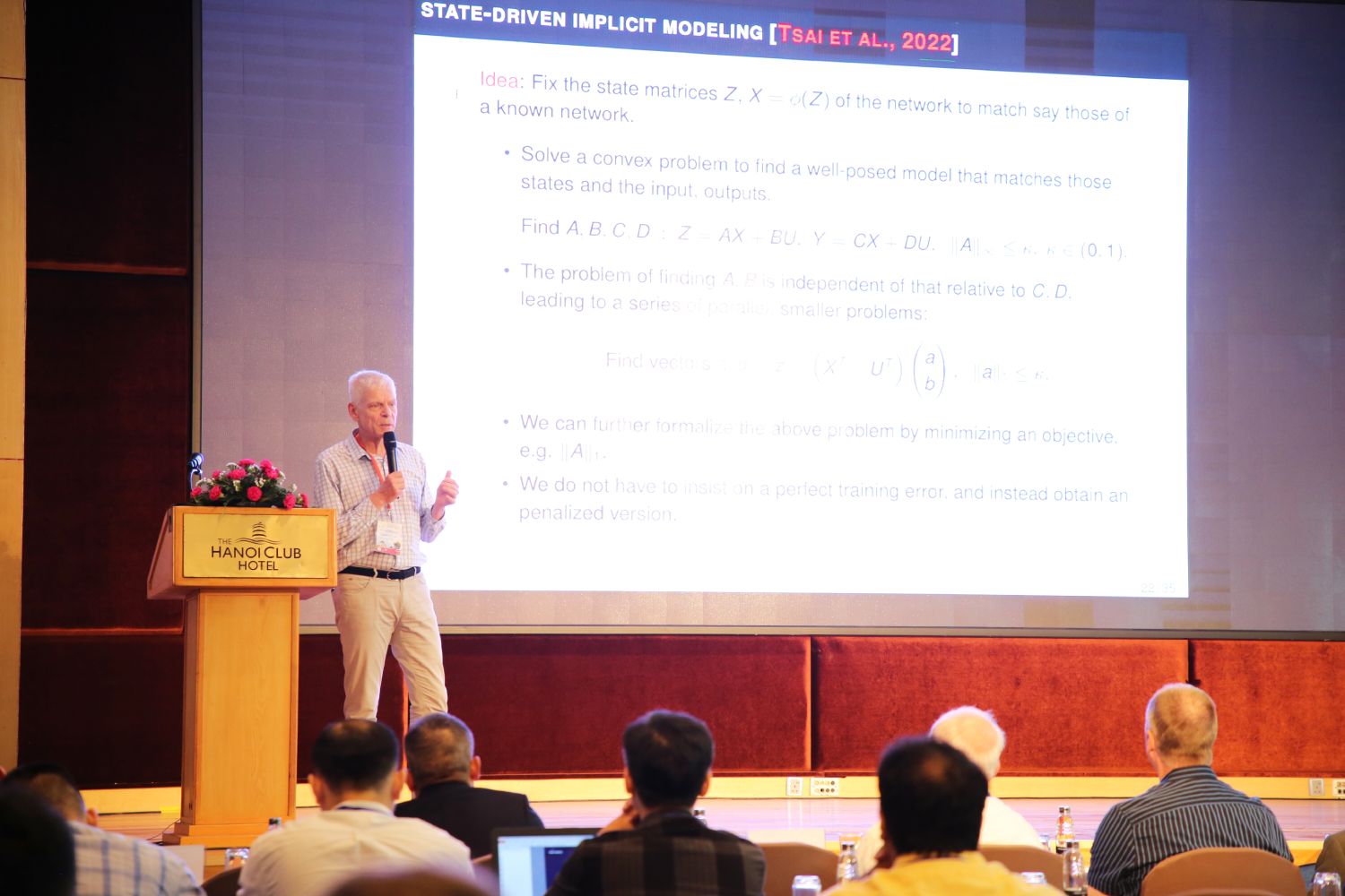 GS.TS. Laurent El Ghaoui (Đại học California, Berkeley, Hoa Kỳ; Trường Đại học VinUni, Việt Nam) mở đầu 07 phiên toàn thể với bài trình bày về “Representing and Extending Deep Learning via Implicit Models”