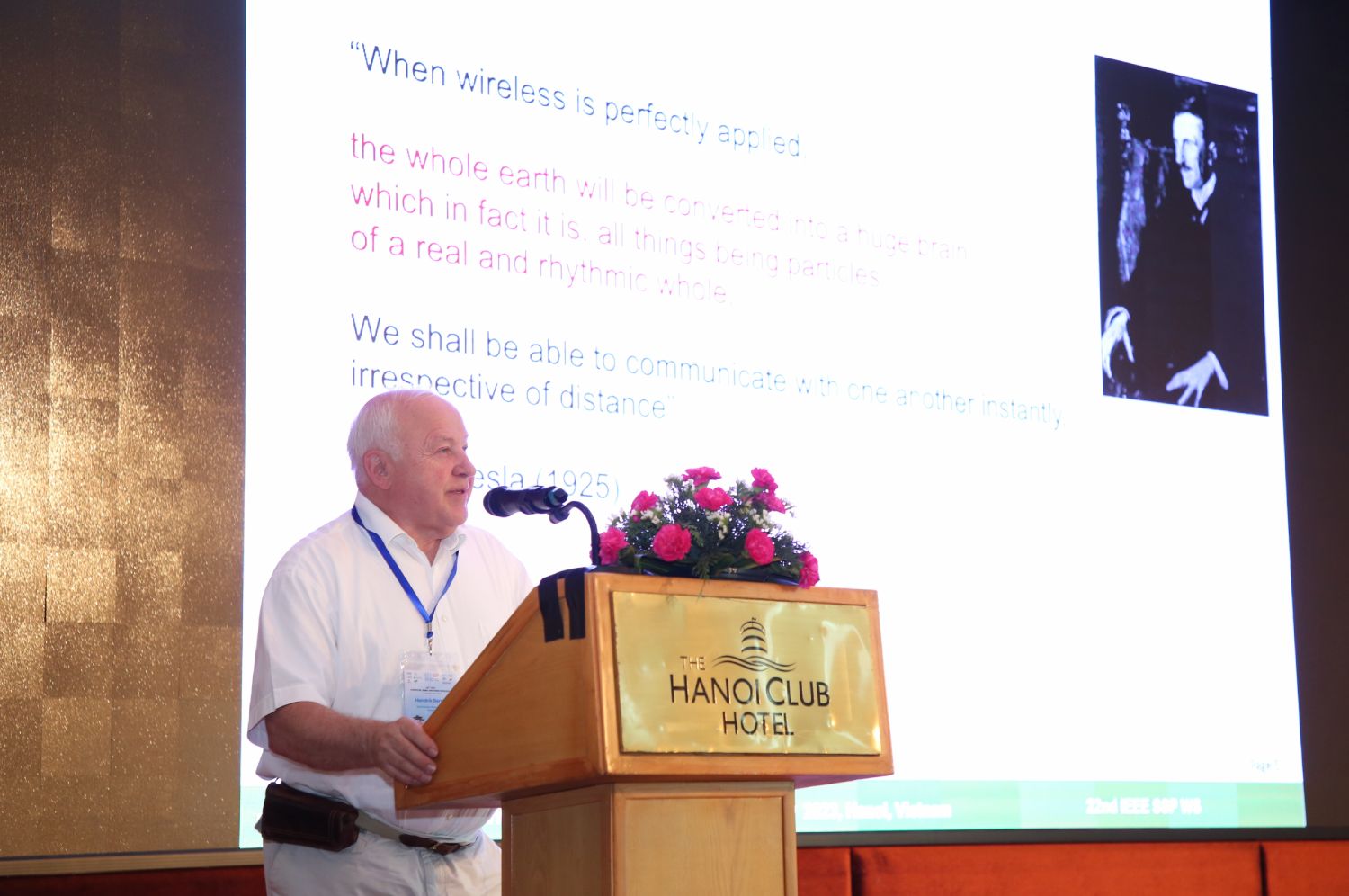 Trong khuôn khổ Hội thảo, trước phiên khai mạc đã diễn ra buổi Tutorials thu hút được nhiều sự quan tâm với các bài trình bày của các diễn giả GS. Wray Buntine (Trường ĐH VinUni, Việt Nam) “Bayesian Methods andTheir Use in Deep Learning”, TS. Daniel Benevides da Costa (Technology InnovatinInstitute, UAE) “Rate-Splitting Multiple Access: Recent Advances from a PolarimetricPerspective” và GS. Adel Belouchrani (Ecole Nationale Polytechnique, Algeria) “Quadratic Time Frequency Array Signal Processing: Multi-Dimensional Processing for Non-stationary Signals”.