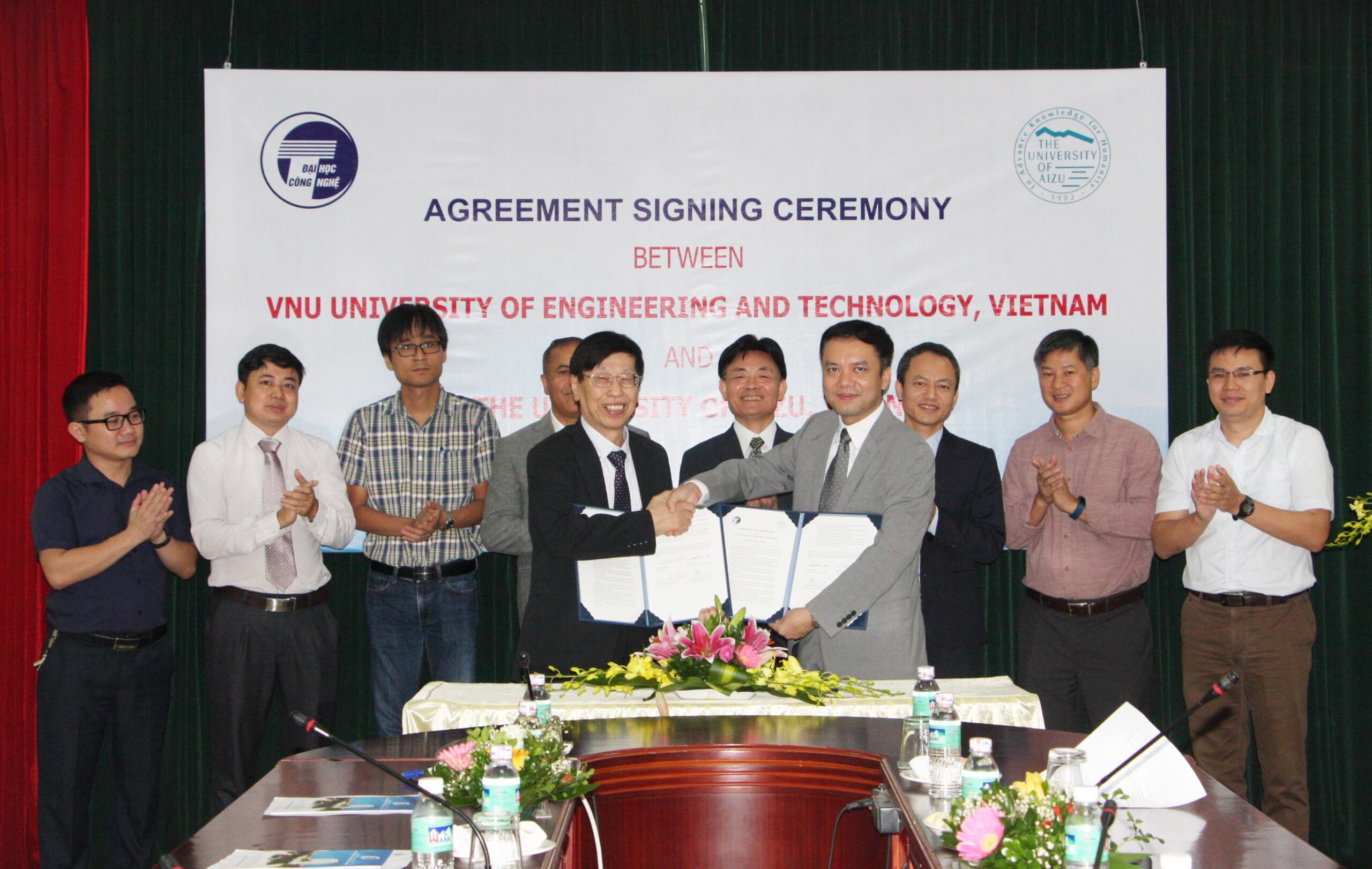 Phát biểu tại lễ ký kết, Hiệu trưởng Nguyễn Việt Hà cho biết Trường Đại học Aizu là đối tác hợp tác của Nhà trường trong lĩnh vực đào tạo, nghiên cứu. Năm 2012, Nhà trường đã ký kết văn bản thỏa thuận hợp tác lần đầu về nghiên cứu khoa học, trao đổi học thuật, xây dựng chương trình đào tạo và đến năm 2017 đã chính thức ký hợp tác cụ thể việc cấp học bổng đào tạo theo chương trình 2 + 2. Qua quá trình hợp tác, hai bên đã có những hoạt động hợp tác như trao đổi giảng viên, nghiên cứu viên, xây dựng các nhóm hợp tác nghiên cứu chung, phối hợp cùng nhau tổ chức các hội nghị khoa học quốc tế và chia sẻ kinh nghiệm quản trị đại học tiên tiến… Đến nay, Trường ĐHCN đã có hai sinh viên ngành Công nghệ thông tin và ngành Điện tử viễn thông sau thời gian học 2 năm tại Việt Nam được chuyển tiếp sang học 2 năm tại Đại học Aizu và nhận bằng tốt nghiệp tại Nhật. Nhà trường hy vọng hợp tác giữa Trường Đại học Aizu với Trường ĐHCN nói riêng và ĐHQGHN nói chung sẽ mở ra những cơ hội mới nhằmkhuyến khích các giảng viên, nhà khoa học của hai bên tham gia tích cực các hoạt động nghiên cứu trong các đề tài khoa học chung, thậm chí thành lập phòng thí nghiệm phối thuộc, để đóng góp vào sự nghiệp phát triển giáo dục đại học và công nghệ.