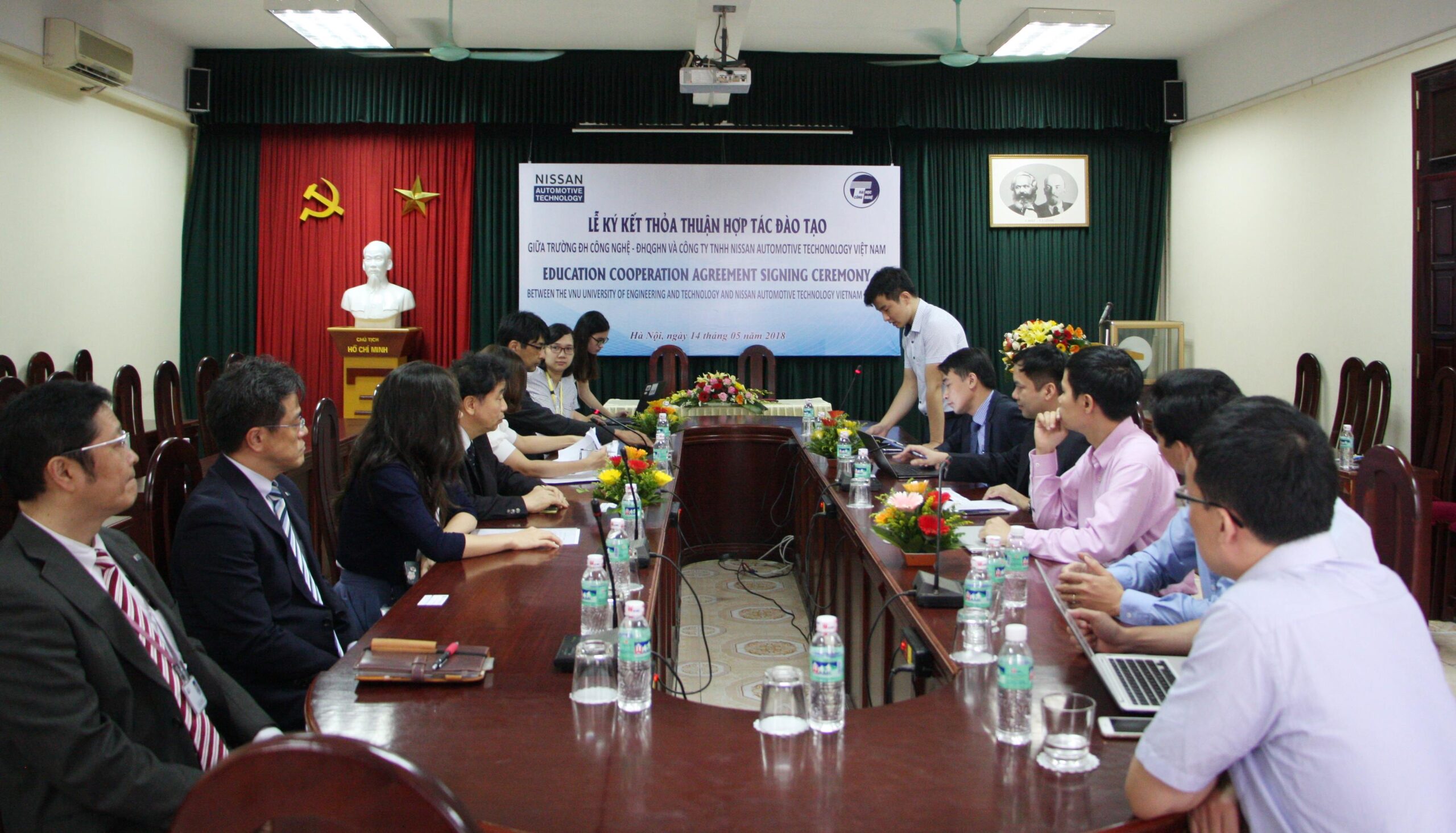 Ngày 14/05, Trường Đại học Công nghệ – Đại học Quốc gia Hà Nội tổ chức lễ ký kết với công ty Nissan Automotive Technology Việt Nam (NATV) trong việc phối hợp xây dựng chương trình hợp tác đào tạo và tuyển dụng tại nhà E3.