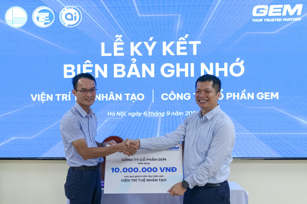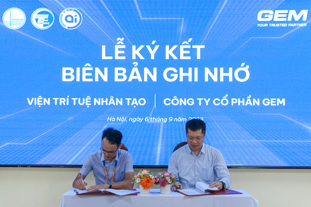 Ngày 06/09/2023, đại diện hai bên của Viện Trí tuệ nhân tạo, Trường Đại học Công nghệ và Công ty cổ phần GEM đã chính thức ký kết Thỏa thuận hợp tác chiến lược về đào tạo, phát triển dự án và năng lực công nghệ nhằm phát huy thế mạnh của từng đơn vị, tạo ra môi trường học tập, chuyển giao công nghệ và nghiên cứu khoa học tiên phong.