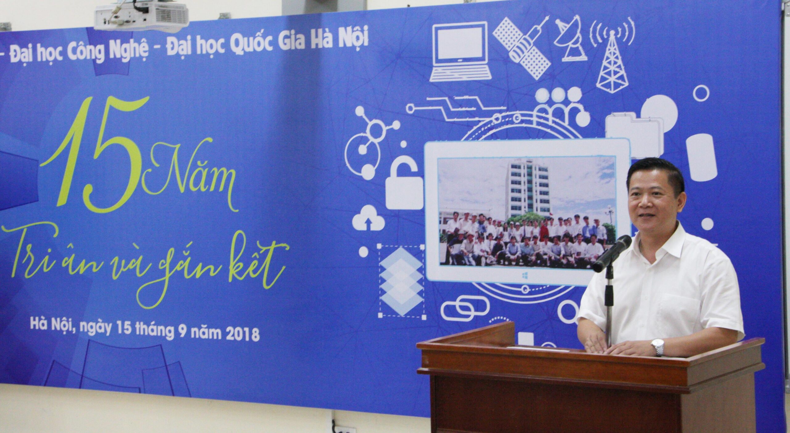 Phát biểu tại buổi lễ, PGS.TS Trương Vũ Bằng Giang, giáo viên chủ nhiệm lớp đã chúc mừng sự thành công qua 15 năm của cựu sinh viên K44Đ, chúc mừng thành quả lao động không mệt mỏi của các thầy/cô giáo trong khoa ĐTVT nói riêng và trường ĐHCN nói chungđã làm nên kết quả của lớp K44Đ. Những sự thành công được ghi nhận là nỗ lực học tập miệt mài trong những năm ngồi trên ghế nhà trường; là sự rèn luyện và phấn đấu trong suốt 15 năm của các cựu sinh viên K44Đ. Lớp K44Đ là thế hệ được học tập từ khithành lập Khoa Công nghệ (ngày nay là Trường ĐHCN), là cái nôi của thế hệ các thầy/cô cống hiến và luôn tự hào về chất lượng đào tạo. Các cựu sinh viên đang sống trong thế hệ lao động vàng – giai đoạn có khả năng cống hiến cho xã hội, PGS hi vọng các cựu sinh viên sẽ tiếp tục các câu chuyện về sự thành công và đóng góp vào sự phát triển của nền kinh tế tri thức hiện nay.