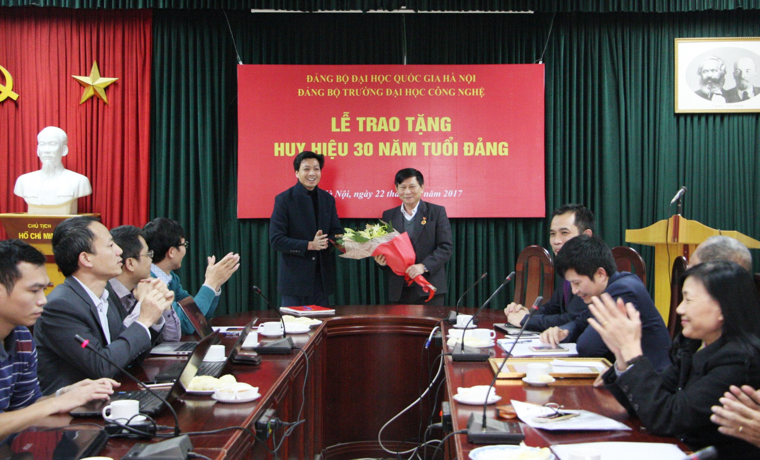 Ngày 22/12/2017, Đảng uỷ Trường Đại học Công nghệ – Đại học Quốc gia Hà Nội đã long trọng tổ chức “Lễ trao tặng Huy hiệu 30 năm tuổi Đảng” cho GS.TS Bạch Gia Dương (Chi bộ Điện tử viễn thông) và TS. Trần Mậu Danh (Chi bộ Hiệu bộ 1).