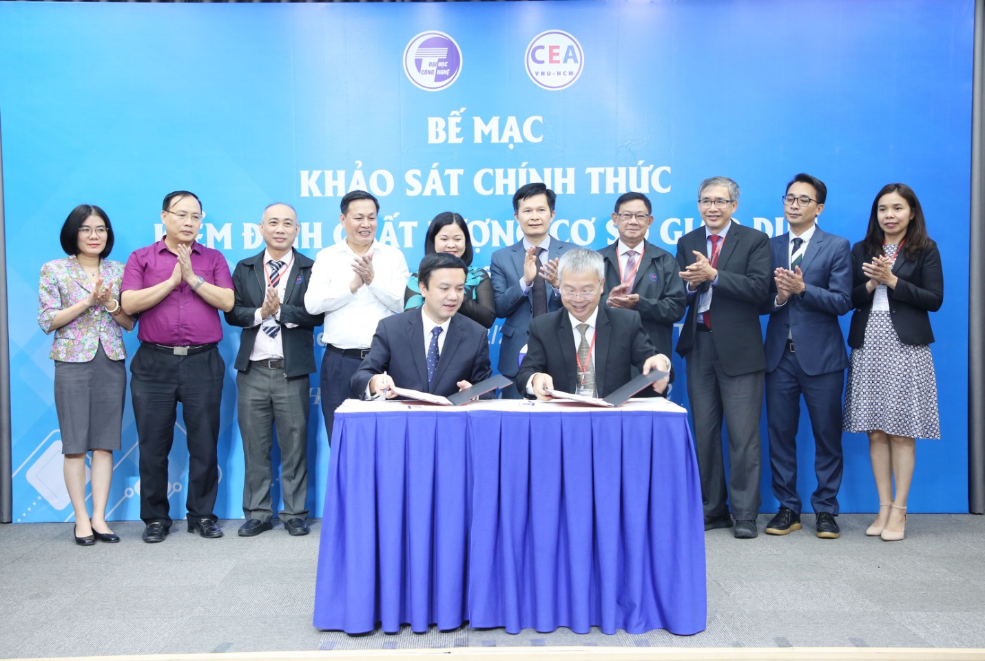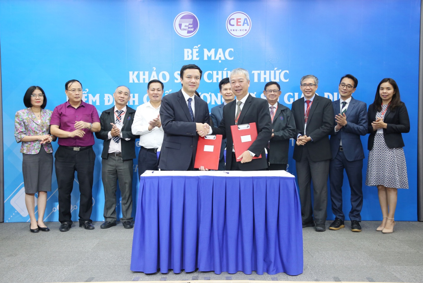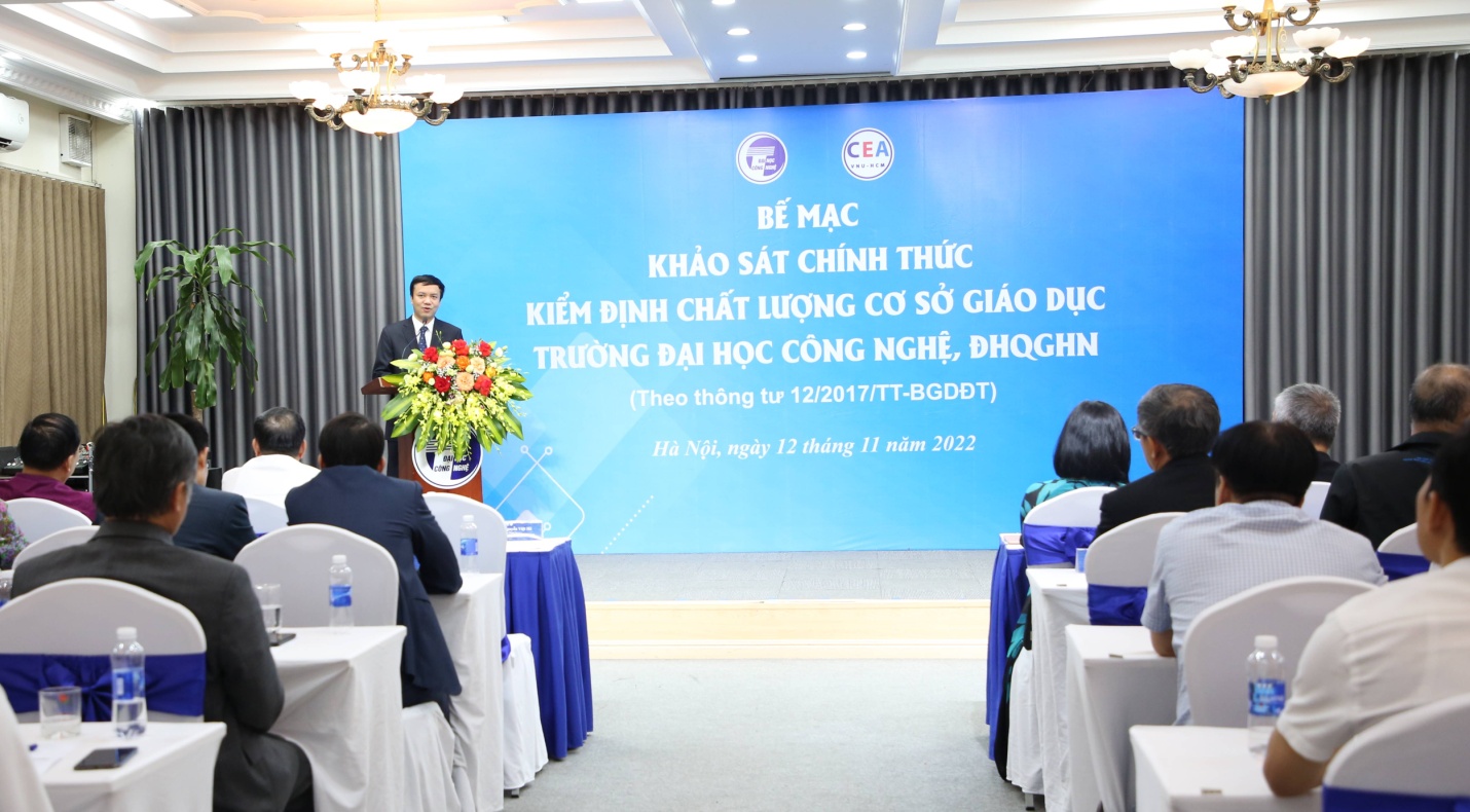 Sau 05 ngày làm việc khẩn trường, tích cực và hiệu quả, chiều ngày 12/11/2022, Đoàn đánh giá ngoài đến từ Trung tâm Kiểm định chất lượng giáo dục, Đại học Quốc gia Thành phố Hồ Chí Minh (CEA) đã hoàn thành đợt khảo sát chính thức, đánh giá chất lượng cơ sở giáo dục tại Trường Đại học Công nghệ – Đại học Quốc gia Hà Nội.