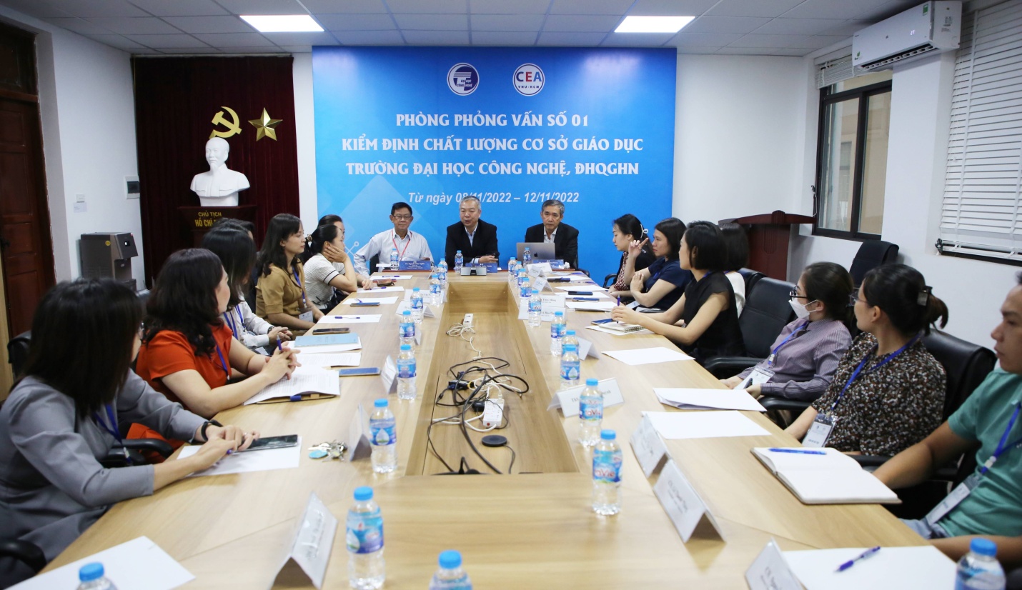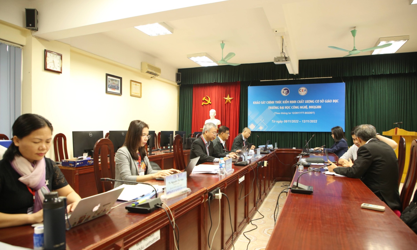 Đợt khảo sát chính thức được thực hiện từ ngày 8/11 – 12/11/2022 tại Trường ĐH Công nghệ gồm các hoạt động như nghiên cứu báo cáo tự đánh giá, hồ sơ minh chứng; khảo sát và trao đổi với các đơn vị; phỏng vấn các bên liên quan trong và ngoài trường; kiểm tra, khảo sát cơ sở vật chất.