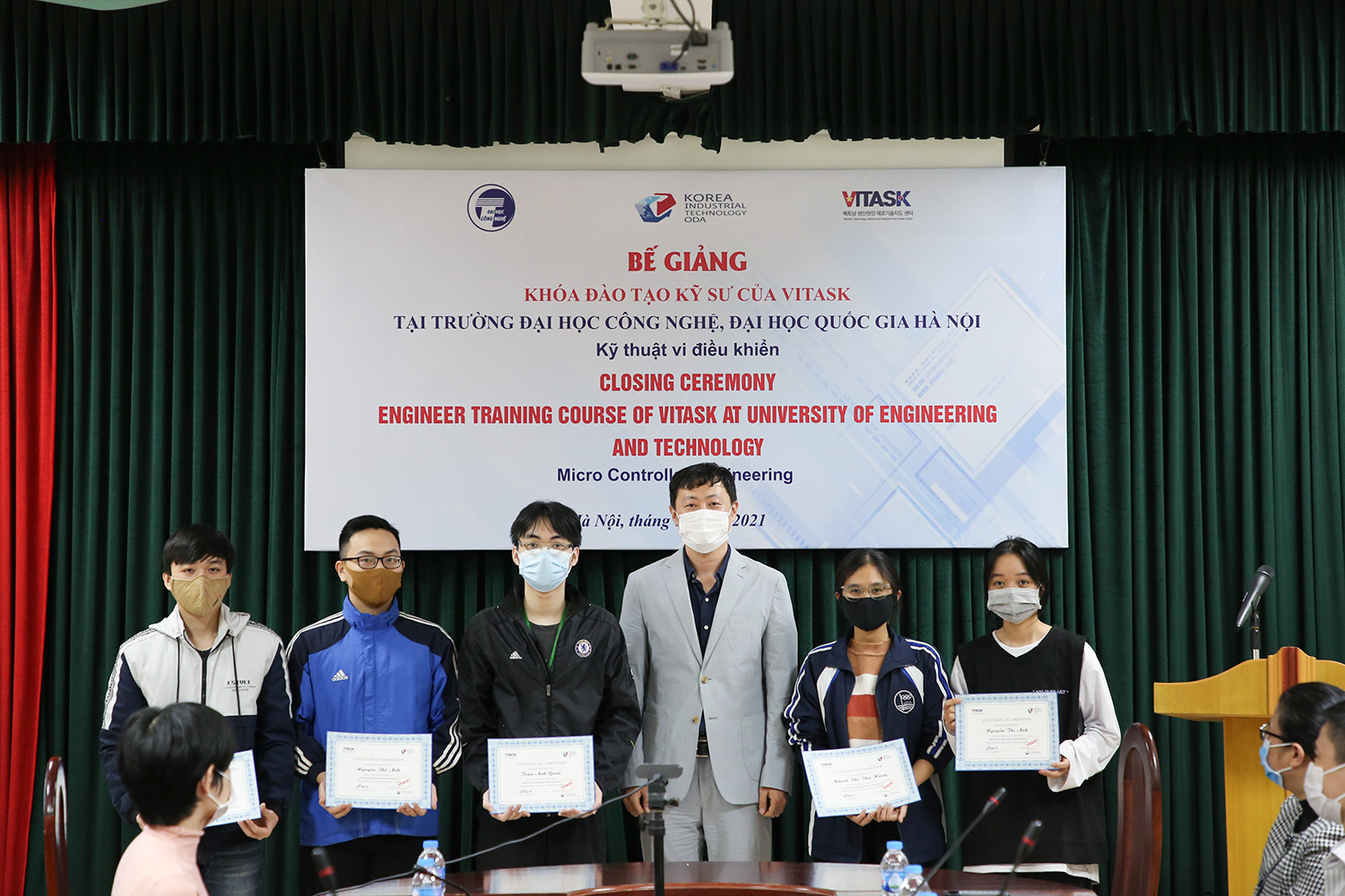 Khoa Điện tử Viễn thông, Trường Đại học Công nghệ đã phối hợp với Trung tâm Tư vấn và Giải pháp Công nghệ Việt Nam – Hàn Quốc (VITASK) tổ chức khoá học Kỹ thuật Vi điều khiển và ứng dụng. Khoá học kéo dài trong 10 buổi với sự hướng dẫn của giáo sư Lee Si Huyn tới từ trường Đại học Dong Seoul. Các sinh viên đã được hướng dẫn thực hành với các vi điều khiển, bo mạch và phần mềm điều khiển. Khoá học nhận được sự hưởng ứng nhiệt tình của các bạn sinh viên trong Khoa.