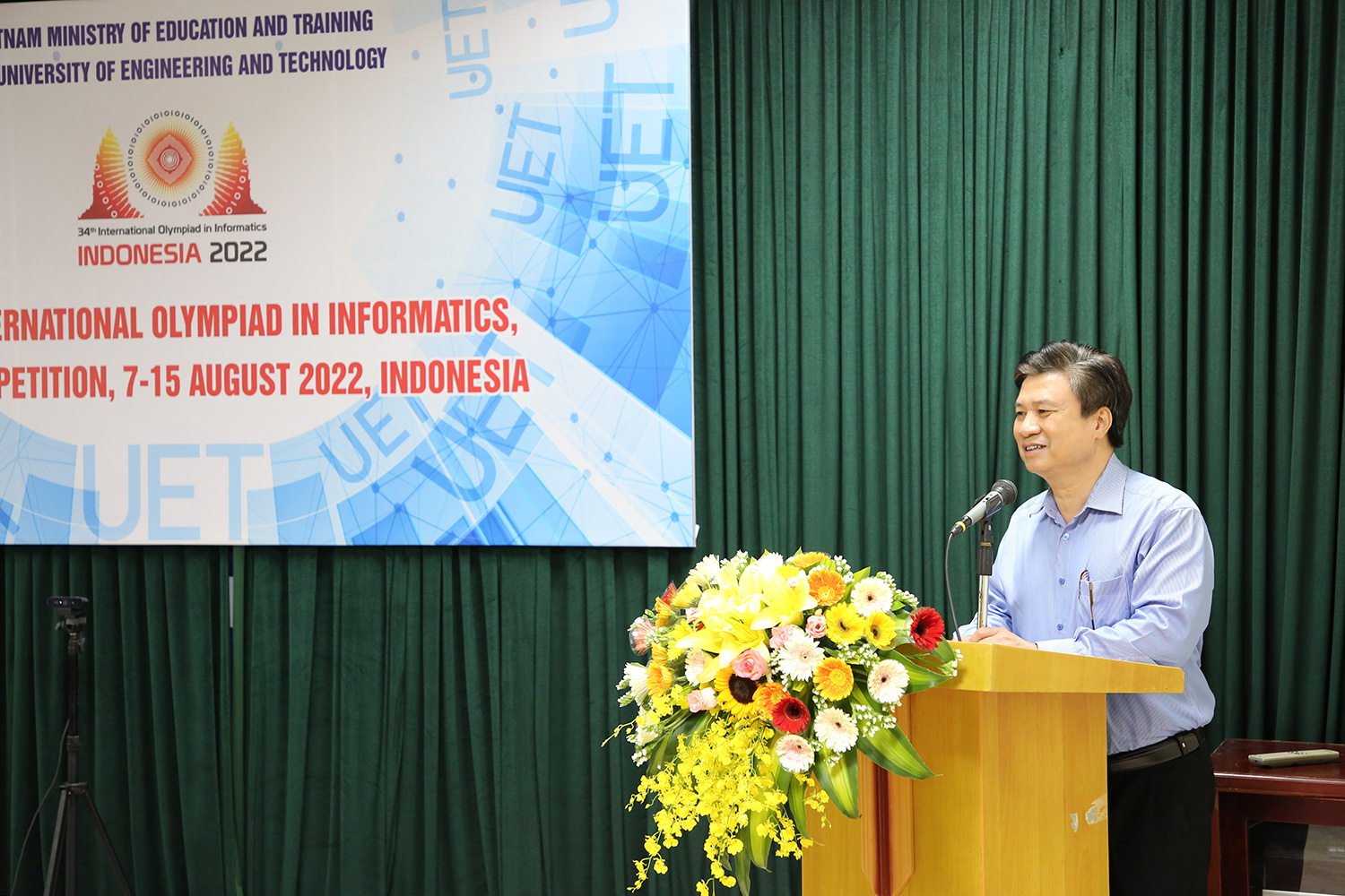 Phát biểu khai mạc, PGS.TS. Nguyễn Việt Hà cho biết: Olympic Tin học quốc tế năm 2022 được tổ chức theo hình thức thi trực tuyến và trực tiếp. Đội tuyển Việt Nam tham gia thi trực tuyến tại Trường Đại học Công nghệ, Đại học Quốc gia Hà Nội. Bên cạnh công tác chuyên môn, nhà trường đã chuẩn bị cơ sở vât chất, kỹ thuật để đảm bảo kỳ thi được diễn ra thành công. Hiệu trưởng gửi lời chúc mừng tới các thí sinh đã nỗ lực giành từng điểm số trong cuộc thi để đạt được kết quả tốt nhất.