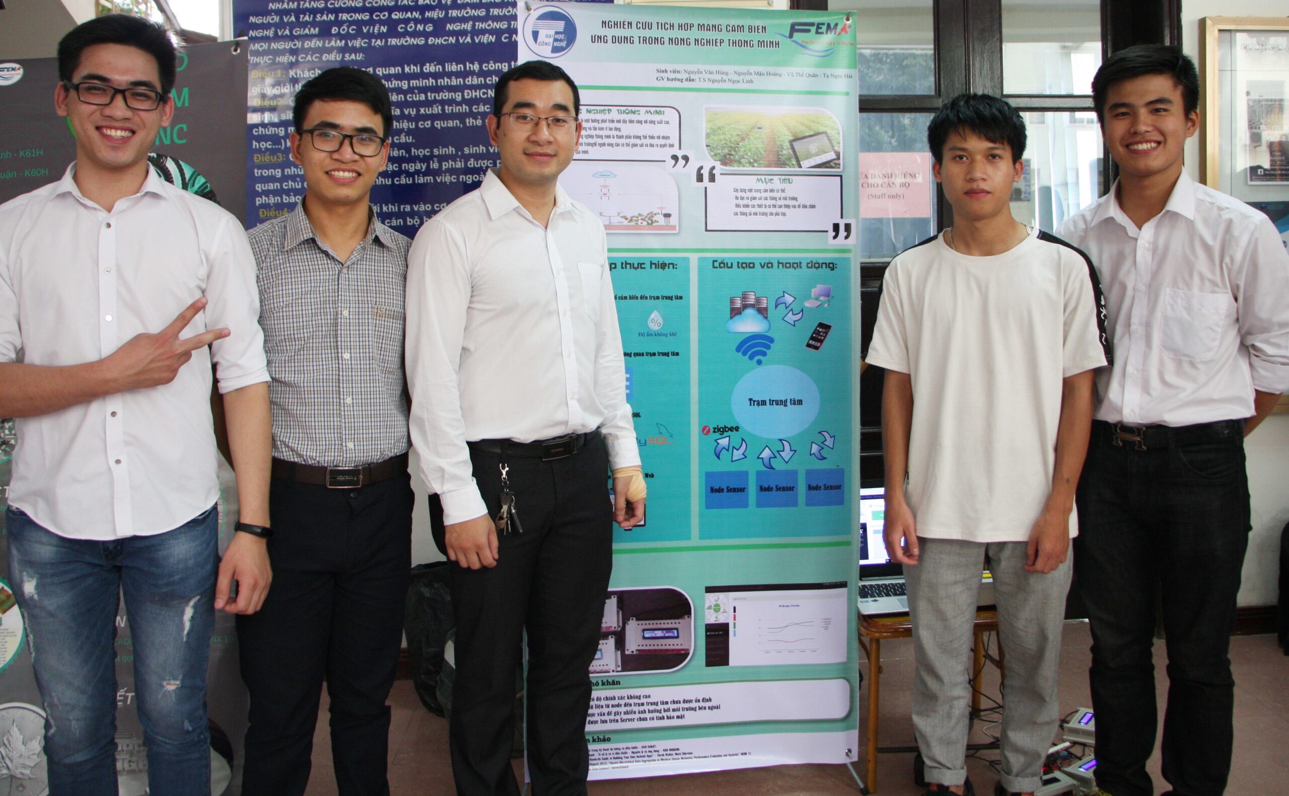 Sau một năm tìm hiểu và nghiên cứu, nhóm sinh viên khoa Cơ học kỹ thuật và Tự động hóa (Trường Đại học Công nghệ) đã thực hiện đề tài “Nghiên cứu tích hợp mạng cảm biến ứng dụng trong nông nghiệp thông minh” với sự hướng dẫn của TS. Nguyên Ngọc Linh và đạt giải Ba giải thưởng “Sinh viên nghiên cứu khoa học” của Bộ Giáo dục và Đào tạo năm 2018.