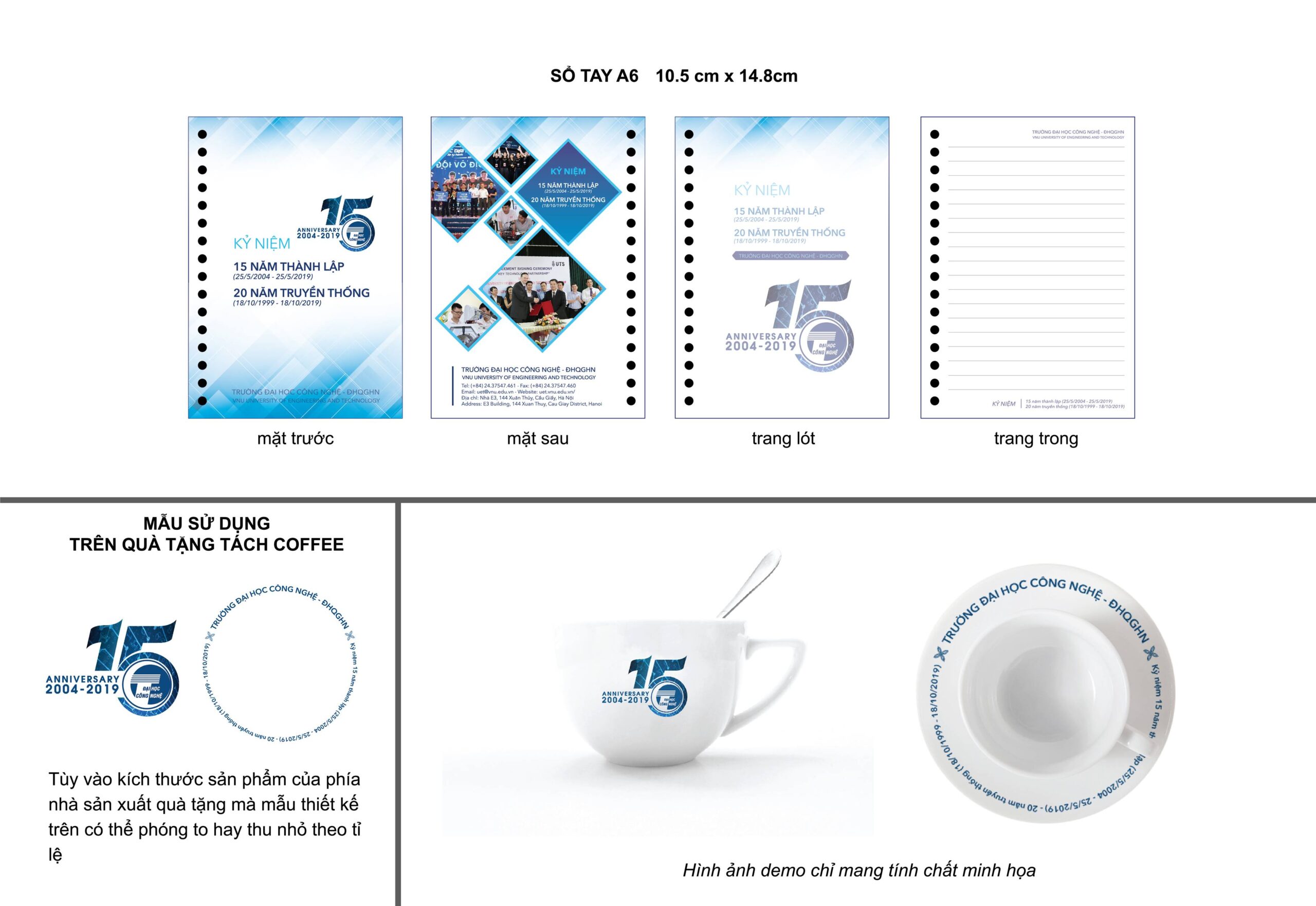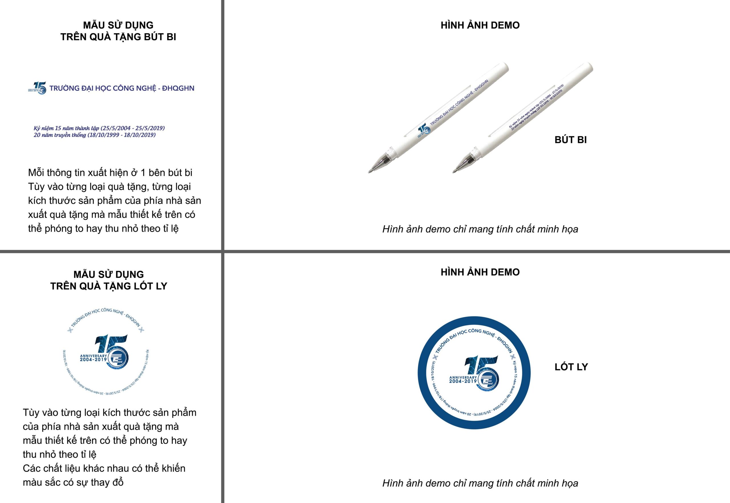 Nhân dịp kỉ niệm 15 năm thành lập (2004-2019) và 20 năm ngày truyền thống (1999-2019), Trường Đại học Công nghệ công bố các mẫu quà tặng sử dụng trong các hoạt động của Nhà trường.