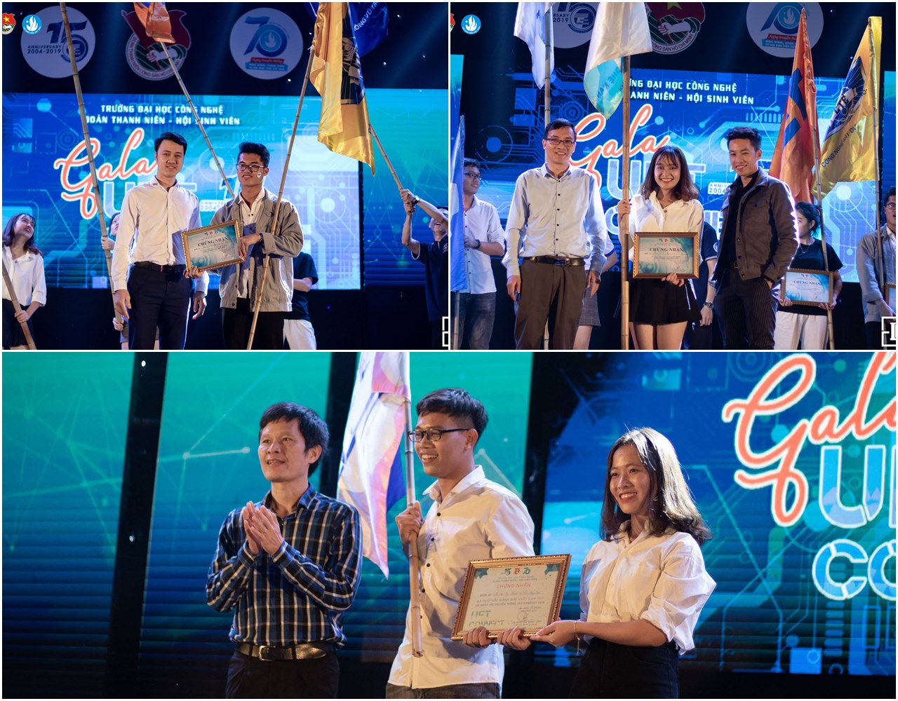 Cùng ngày, tại Đêm hội trại “UET Connect” nhiều cá nhân, tập thể đã nhận được khen thưởng của Trung ương Đoàn TNCS Hồ Chí Minh, Trung ương Hội Sinh viên Việt Nam, Hội Sinh viên Việt Nam Thành phố Hà Nội … vì những thành tích xuất sắc trong công tác Đoàn và phong trào thanh niên khối Đại học, Cao đẳng, Học viện Thủ đô năm học 2018 – 2019. Đặc biệt, Đoàn TNCS Hồ Chí Minh Trường ĐHCN đã nhận Cờ thi đua của Thành đoàn. Ngoài ra, 55 sinh viên được nhận Giấy chứng nhận sinh viên 5 tốt cấp trường năm học 2018 – 2019.