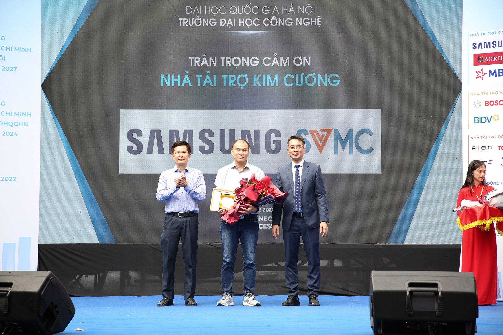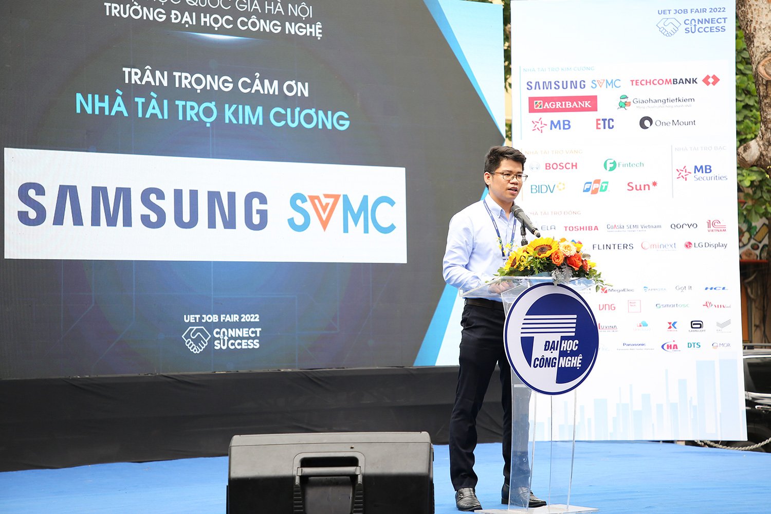 Từ năm 2018, Trung tâm nghiên cứu và phát triển điện thoại Samsung Việt Nam (SVMC) đã tham gia tuyển dụng tại Ngày hội việc làm của Nhà trường. Với những kinh nghiệm tham gia nhiều năm liên tiếp, Ông Hoàng Trọng Tuấn – Phó phòng Nhân sự, phụ trách Tuyển dụng của SVMC chia sẻ: “Công ty rất may mắn và tự hào khi trong suốt thời gian qua được trở thành đơn vị đối tác chiến lược của Trường ĐHCN. SVMC đã tuyển dụng, thu hút được nhiều sinh viên ưu tú của Nhà trường tham gia các chương trình Thực tập sinh, Học bổng tài năng… Hiện tại, SVMC có nhiều cựu sinh viên của Nhà trường đang nắm giữ các vị trí quan trọng, nòng cốt như kỹ sư, Trưởng phòng, Giám đốc công nghệ tại Trung tâm. Ngày hội việc làm là chương trình vô cùng ý nghĩa, thiết thực để tạo ra sân chơi bổ ích kết nối doanh nghiệp và sinh viên”.