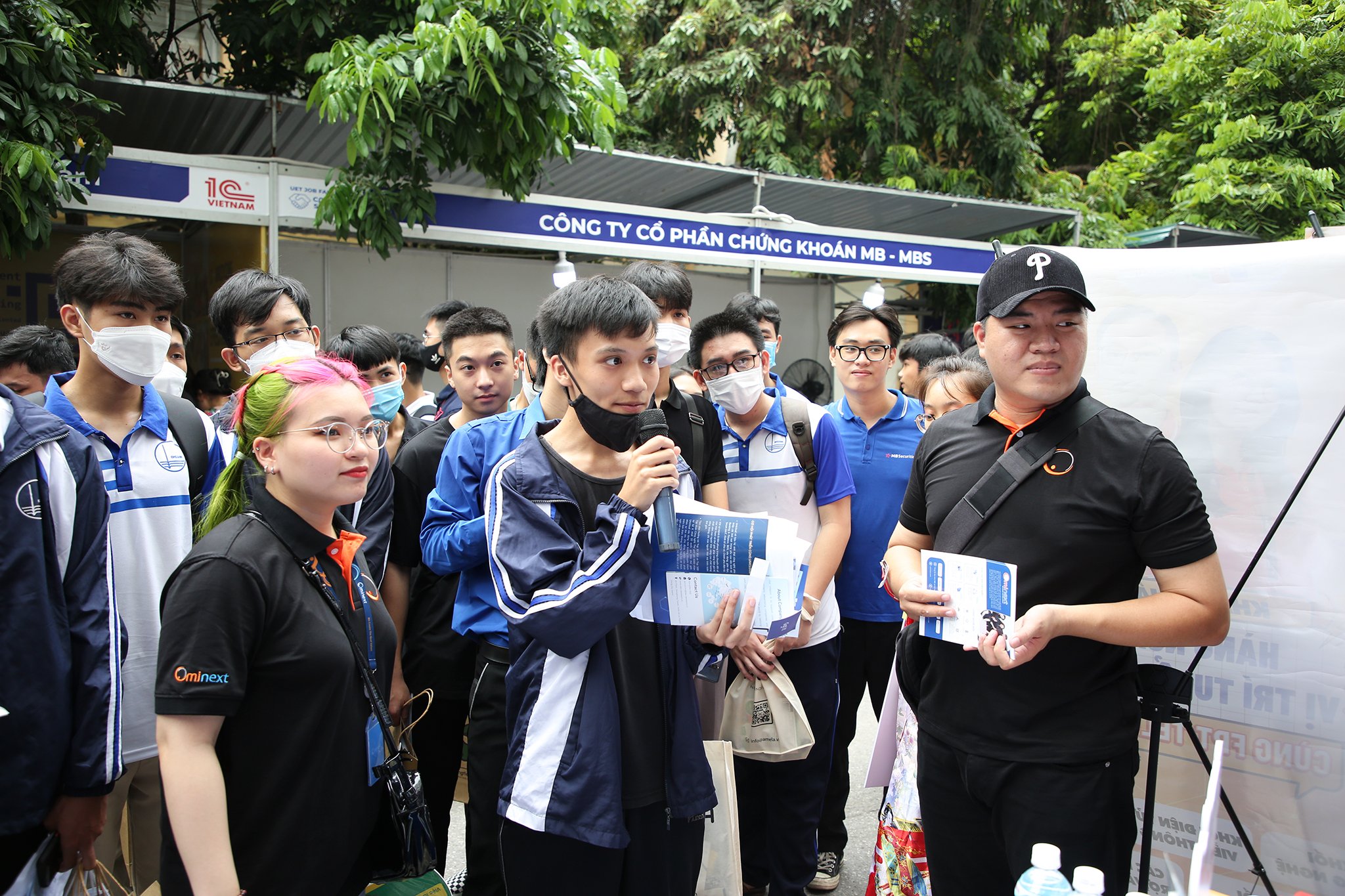 Tại ngày hội các doanh nghiệp sẽ trực tiếp phỏng vấn các ứng viên phù hợp các vị trí tuyển dụng. Những buổi tọa đàm, hoạt động phỏng vấn giúp các sinh viên có cơ hội học hỏi những kiến thức từ cựu sinh viên đã có kinh nghiệm đi trước cũng như được các doanh nghiệp giải đáp những thắc mắc, vấn đề còn chưa hiểu rõ và là hành trang cho sinh viên chuẩn bị ra trường. Không giấu được tâm trạng hồi hộp, sinh viên năm thứ ba ngành Công nghệ kỹ thuật Cơ điện tử, Lê Mạnh Dũng (khoa Cơ học kỹ thuật và tự động hóa) cùng bạn bè đã mong chờ ngày hội việc làm. Dũng cho biết: “Hai năm liên tiếp em đã tham gia Ngày hội việc làm và mỗi năm đều có những màu sắc, trải nghiệm khác nhau. Đây là sự kiện lớn thu hút được nhiều doanh nghiệp ở tất cả lĩnh vực, từ đó sẽ giúp cho em và các bạn sinh viên dễ dàng tìm hiểu, tiếp cận thông tin từ các nhà tuyển dụng ở mọi ngành nghề. Mặc dù với năm thứ ba nhưng thông qua Ngày hội đã giúp em định hướng được mục tiêu nghề nghiệp và lập kế hoạch trong tương lai”. Dù mới năm ba nhưng Dũng hoàn toàn tự tin với những kiến thức học được tại Trường để đăng ký phỏng vấn và tham gia các khóa học của doanh nghiệp.