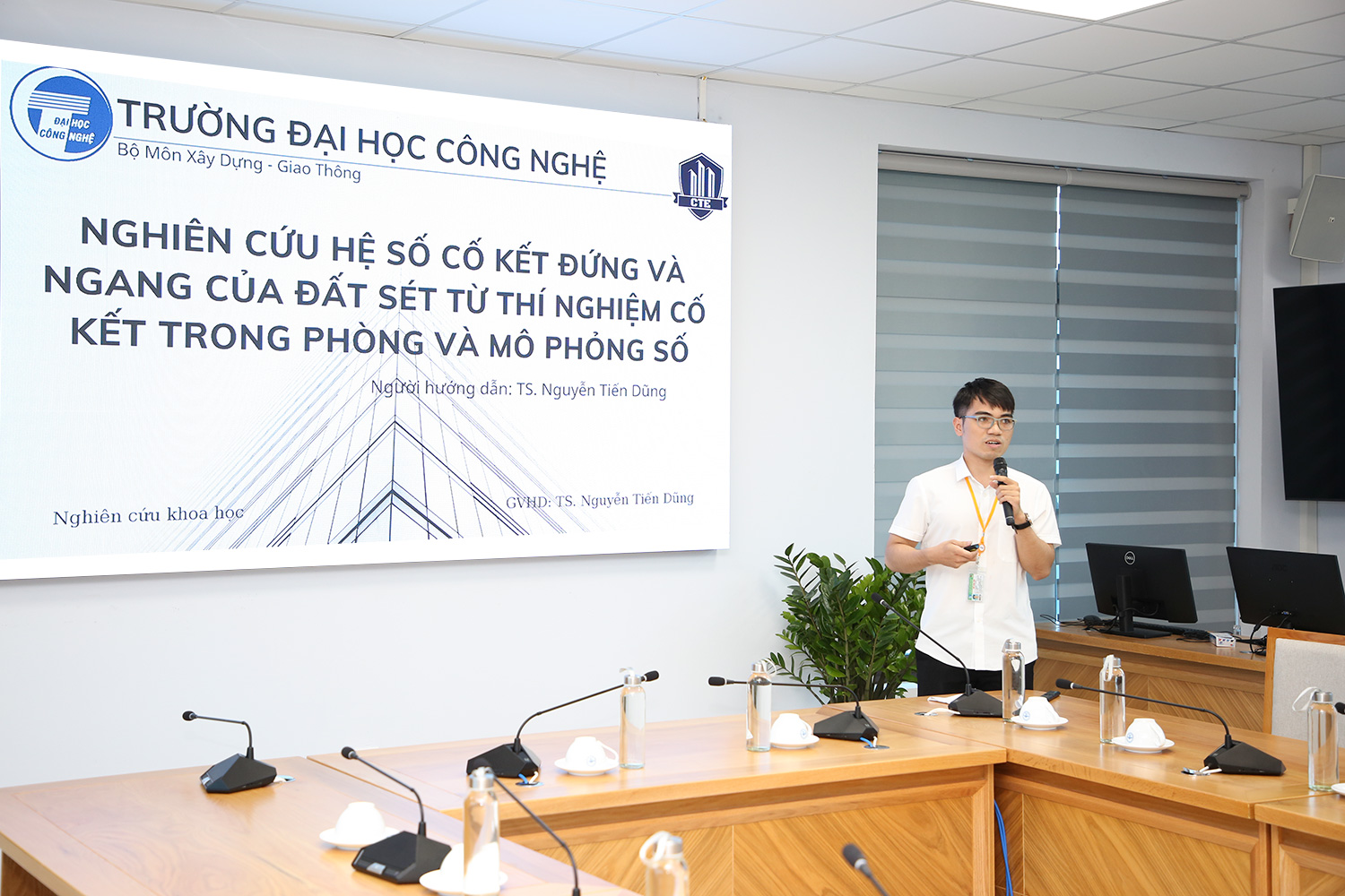 Bắt nguồn từ mong muốn giao thông Việt Nam có những tuyến đường vững chắc, hiện đại, an toàn và tiết kiệm chi phí… đã thôi thúc sinh viên Nguyễn Công Kiên, sinh viên năm thứ năm, Bộ môn Công nghệ Xây dựng – Giao thông, Trường ĐH Công nghệ, ĐHQGHN thực hiện đề tài “Nghiên cứu hệ số cố kết đứng và ngang của đất sét từ thí nghiệm cố kết trong phòng và mô phỏng số”. Đây là một trong số 32 công trình khoa học sinh viên được lựa chọn tham gia xét khen thưởng và đạt giải Nhì cấp ĐHQGHN năm học 2021-2022. Đề tài của Nguyễn Công Kiên được Hội đồng thẩm định và nhiều chuyên gia khoa học đánh giá cao về tính ứng dụng thực tiễn.