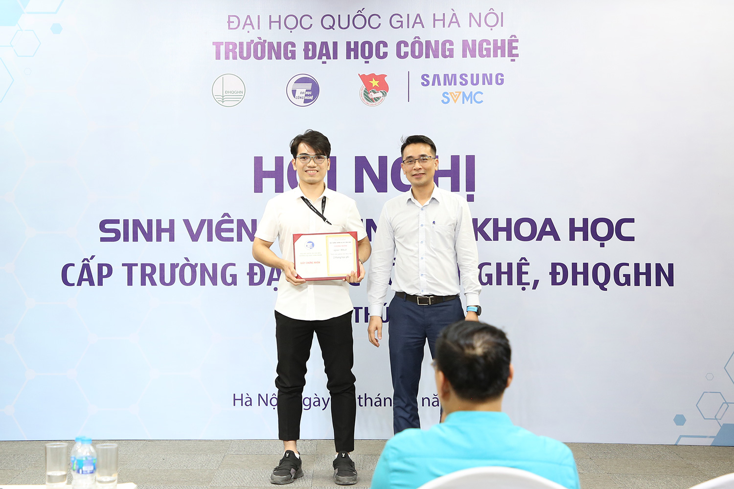 Nguyễn Công Kiên trình bày đề tài tại Hội nghị sinh viên nghiên cứu khoa học cấp ĐHQGHN
