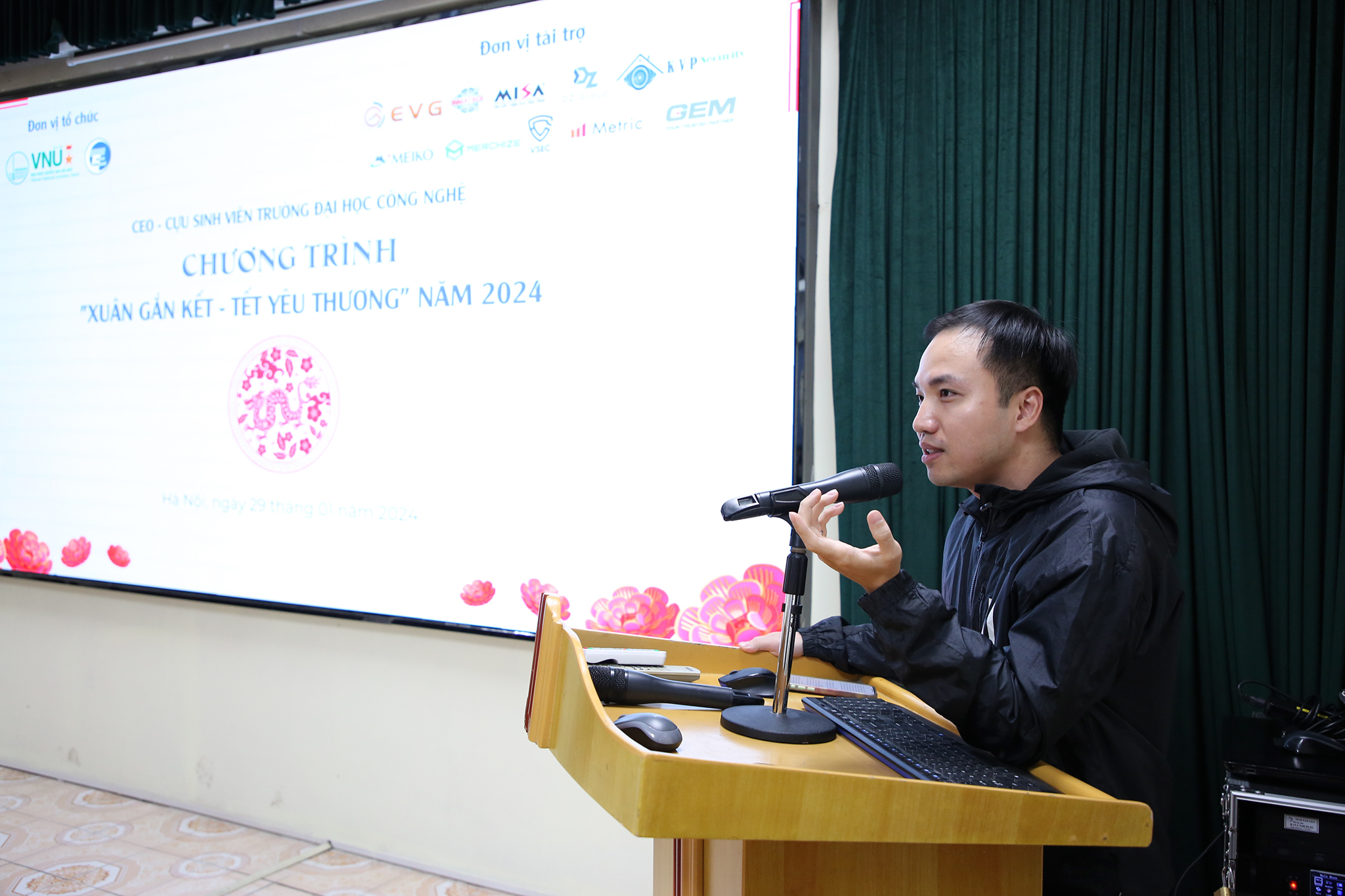 Trong không khí ấm áp của chương trình, các cựu sinh viên đã chia sẻ những kỷ niệm và bày tỏ niềm vui khi nhìn thấy sự phát triển của Trường ĐH Công nghệ về số lượng, chất lượng. Sau một thời gian được trở lại Trường và giao lưu, gặp gỡ sinh viên, anh Nguyễn Văn Khánh – CEO Công ty CP Khoa học dữ liệu Việt Nam, là cựu sinh viên K57 khoa Công nghệ thông tin đã chia sẻ những câu chuyện của bản thân khi còn ngồi trên ghế giảng đường. Qua đó, anh Nguyễn Văn Khánh hi vọng sinh viên hãy giữ vững, kiên định với đam mê của bản thân; chia sẻ những mong muốn, ước mơ của bản thân để nhận được sự hỗ trợ từ Nhà trường, thầy cô và cựu sinh viên; vượt lên chính bản thân. Anh Nguyễn Văn Khánh đã gửi lời chúc mừng năm mới đến Nhà trường, thầy cô và các em sinh viên.