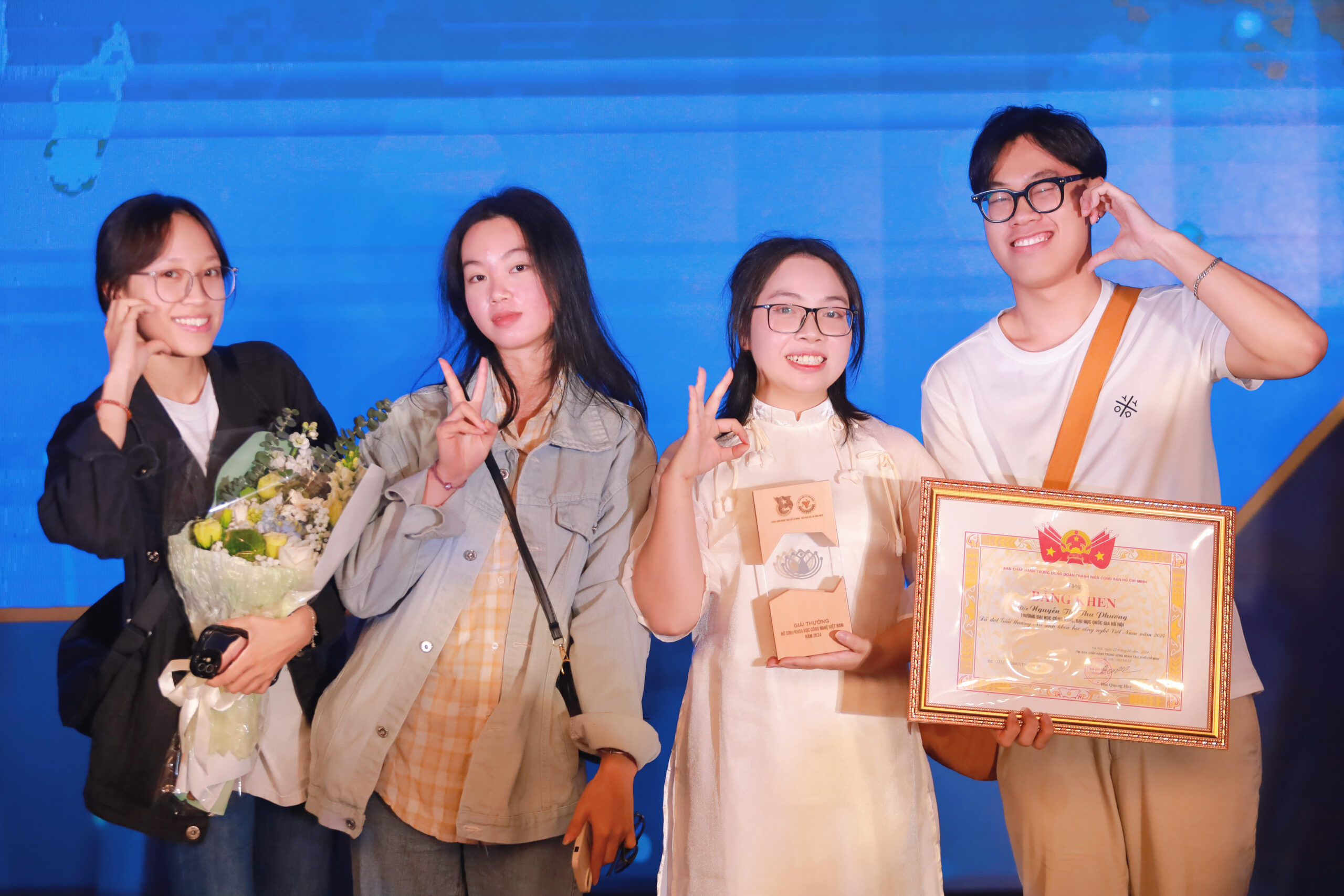 Sinh viên Thu Phương nhận giải thưởng Nữ sinh cùng những người bạn đồng hành