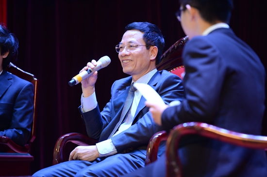 Chia sẻ về việc làm thế nào để bắt đầu khởi nghiệp. Thiếu tướng Nguyễn Mạnh Hùng đã nhấn mạnh, điều khó nhất của khởi nghiệp là tìm ra nhu cầu của xã hội và thị trường để giải quyết được vấn đề. Khi Viettel khởi nghiệp, tôi đã đọc câu chuyện về Chủ tịch Hutchison với triết lý kinh doanh tránh chỗ đông người. Viettel đã áp dụng quan điểm này vào việc kinh doanh, thể hiện bằng hành động càng nhiều người nghĩ đấy là việc khó và nguy hiểm thì Viettel sẽ làm. Để các bạn tìm được chỗ đứng cho mình thì tôi khuyên các bạn nên tránh chỗ đông người. Hiện nay, công nghệ giải quyết được rất nhiều vấn đề thực tế của xã hội trong các lĩnh vực giao thông, y tế, giáo dục… Từ những sự sáng tạo trong lĩnh vực công nghệ, chúng ta đang thực hiện một cuộc cách mạng xóa mù tri thức, xóa mù công nghệ để đưa tri thức, công nghệ đến từng con người, từng hộ gia đình và họ dùng những tri thức đấy để phục vụ cuộc sống tốt hơn. Điều quan trọng là các bạn sinh viên phải nhận thức và lan tỏa được thông điệp này đến những người xung quanh. Từ đó, các bạn sẽ thấy được tầm quan trọng của việc mình đang làm và sẽ làm. Do vậy, Trường ĐHCN nói riêng và ĐHQGHN nói chung cần đặt cao vấn đề dùng công nghệ giải quyết vấn đề xã hội.