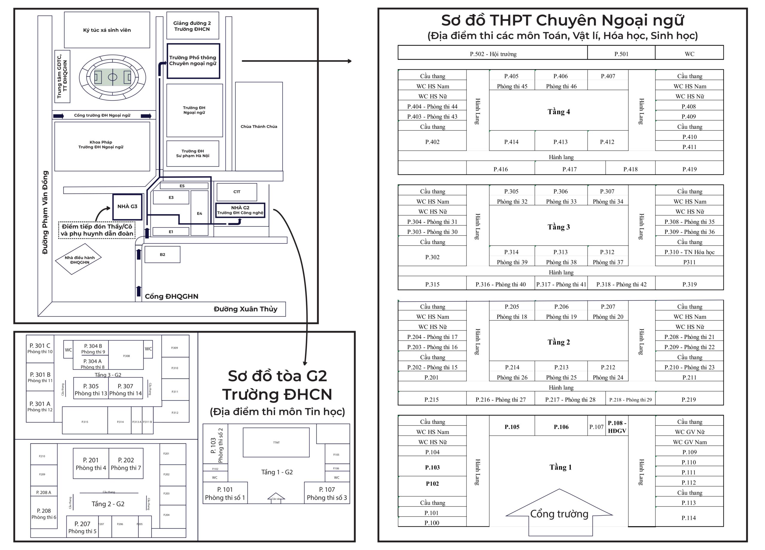 Trường Đại học Công nghệ, Đại học Quốc gia Hà Nội thông báo về sơ đồ phòng thi, địa điểm thi kỳ thi Olympic bậc THPT của ĐHQGHN năm học 2024-2025, như sau: