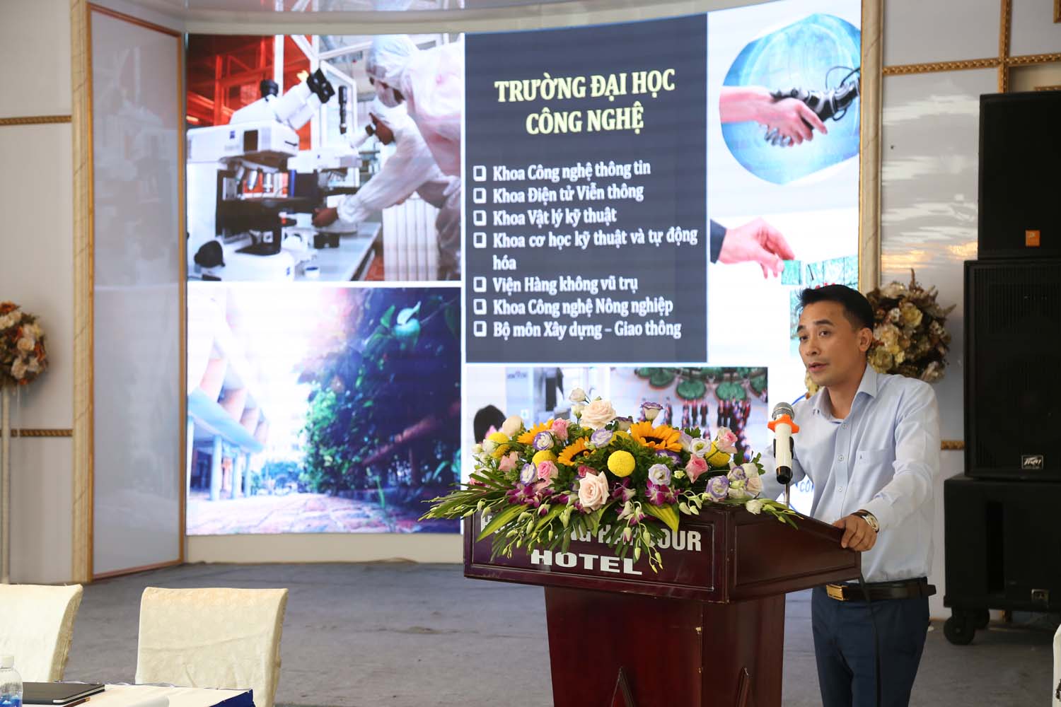 Với những thành tích tiêu biểu sau 20 năm xây dựng và phát triển Trường ĐHCN, Nhà trường được vinh dự đại diện ĐHQGHN báo cáo điển hình tiên tiến. Đại diện lãnh đạo Nhà trường, PGS.TS. Chử Đức Trình – Phó Hiệu trưởng trường ĐHCN đã trình bày báo cáo tại hội nghị. Trường ĐHCN là một trong những đơn vị tiên phong phát triển các chương trình đào tạo cung cấp cho xã hội nguồn nhân lực bậc cao với trình độ khoa học công nghệ tiên tiến. Hiện nay, Nhà trường tổ chức đào tạo 37 chương trình đào tạo với 17 chương trình đào tạo đại học, 12 chương trình đào tạo thạc sỹ và 08 chương trình đào tạo tiến sĩ. Quy mô tuyển sinh đại học tăng nhanh từ năm 2004 với 470 chỉ tiêu đến nay quy mô đạt 1.460 chỉ tiêu. Trong bối cảnh cách mạng công nghiệp 4.0, Trường tiếp tục phát huy vai trò sáng tạo, dẫn dắt, tiên phong nhằm tạo ra các sản phẩm nguồn nhân lực bậc cao với các ngành đào tạo mới như Công nghệ nông nghiệp, Công nghệ hàng không vũ trụ, Công nghệ xây dựng – giao thông, Kỹ thuật robot. Đặc biệt, ngành Kỹ thuật robot được Nhà trường hợp tác xây dựng chương trình đào tạo với Trường Đại học Công nghệ Chiba (Nhật Bản). Từ những năm thành lập, mô hình hợp tác “Trường – Viện – Doanh nghiệp” trong đào tạo, nghiên cứu được Nhà trường phát huy hiệu quả. Khoa Cơ học kỹ thuật và Tự động hóa là một đơn vị đào tạo của Nhà trường được xây dựng và hoạt động theo mô hình phối thuộc giữa trường – viện, một mô hình hợp tác giữa Trường và Viện Cơ học (Viện Hàn lâm KH&CN Việt Nam). Mô hình này là tổ chức và quản lý theo hình thức vừa tập trung, vừa phân tán cả về con người lẫn cơ sở vật chất. Ngoài ra, sự hợp tác giữa Trường và Tập đoàn Samsung cũng là mô hình tiêu biểu về hợp tác giữa trường – doanh nghiệp.