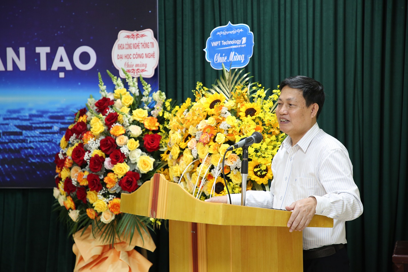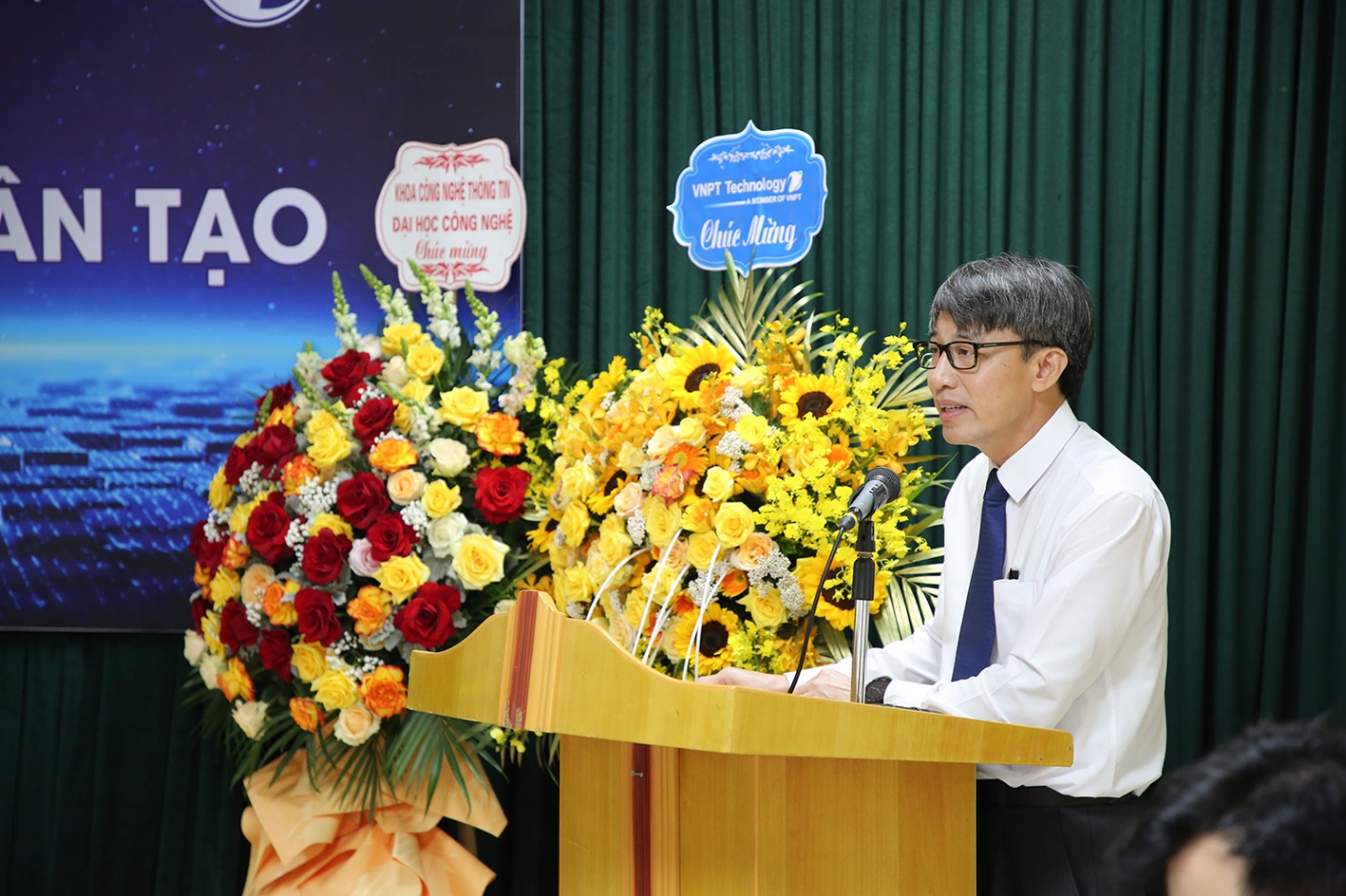 Là một doanh nghiệp đang hợp tác với Trường ĐHCN, trong đó có lĩnh vực trí tuệ nhân tạo, Ông Trần Hữu Quyền – Chủ tịch Hội đồng quản trị Công ty Cổ phần Công nghệ Công nghiệp Bưu chính viễn thông VNPT Technology đã gửi lời chúc mừng đến sự phát triển của Trường ĐHCN. “Trong 18 năm qua, Nhà trường đã có những đóng góp to lớn đối với sự nghiệp giáo dục và phát triển kinh tế – xã hội, trong đó có VNPT Technology. Những cựu sinh viên hiện nay đang làm việc tại VNPT Technology đều thể hiện được cá tính, chất riêng của Trường ĐHCN”. Ông Trần Hữu Quyền mong muốn trong tương lai Viện Trí tuệ nhân tạo sẽ là cầu nối hợp tác đưa kết quả nghiên cứu của Trường ĐHCN nói chung và Viện Trí tuệ nhân tạo nói riêng vào các sản phẩm của VNPT Technology.