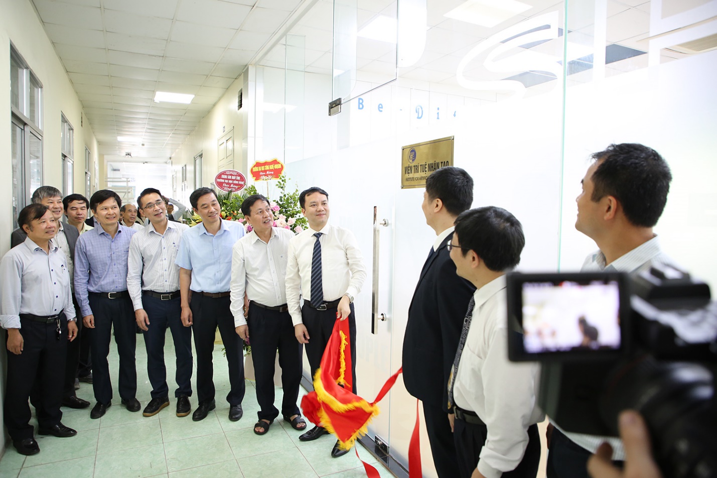 PGS.TS Nguyễn Việt Hà – Hiệu trưởng Nhà trường và Viện trưởng TS. Trần Quốc Long khai trương văn phòng Viện Trí tuệ nhân tạo