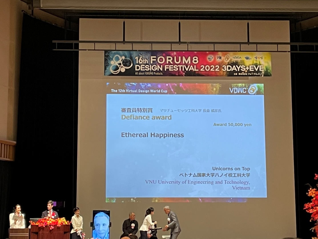 Ngày 17/11/2022, nhóm sinh viên Bộ môn Công nghệ Xây dựng – Giao thông (Trường Đại học Công nghệ – Đại học Quốc gia Hà Nội) là đại diện duy nhất của Việt Nam đạt Giải thưởng do giám khảo bình chọn (Honorable Judge Award) tại vòng chung kết quốc tế cuộc thi “Virtual Design World Cup”, diễn ra tại Nhật Bản.
