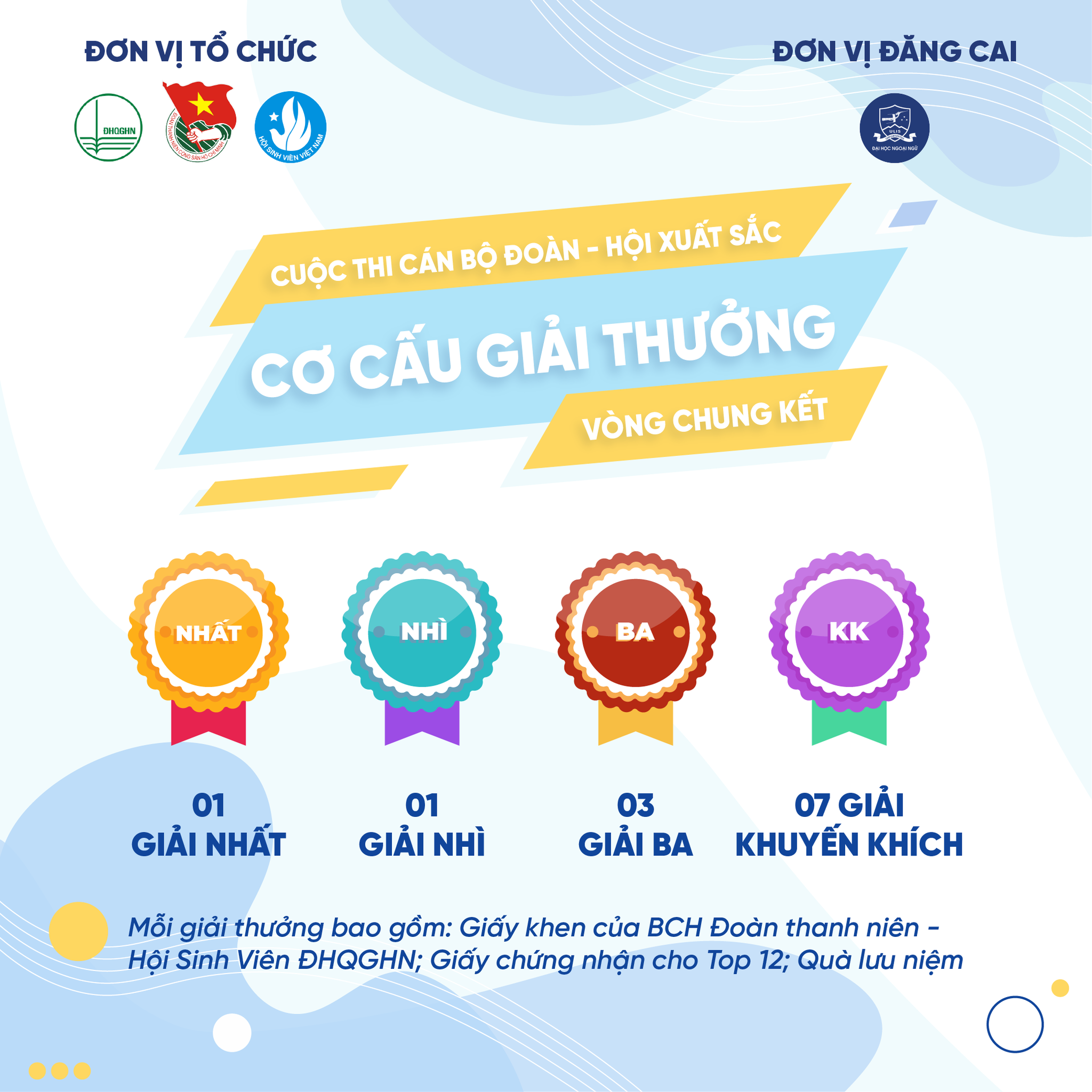 Vòng chung kết Cuộc thi “Cán bộ Đoàn – Hội xuất sắc” năm 2022 là sân chơi của 12 thí sinh tài ba đến từ các đơn vị trực thuộc khối ĐHQGHN để chọn ra người “Thủ lĩnh” tài năng nhất, bản lĩnh nhất và tỏa sáng nhất. Vòng chung kết sẽ diễn ra vào: