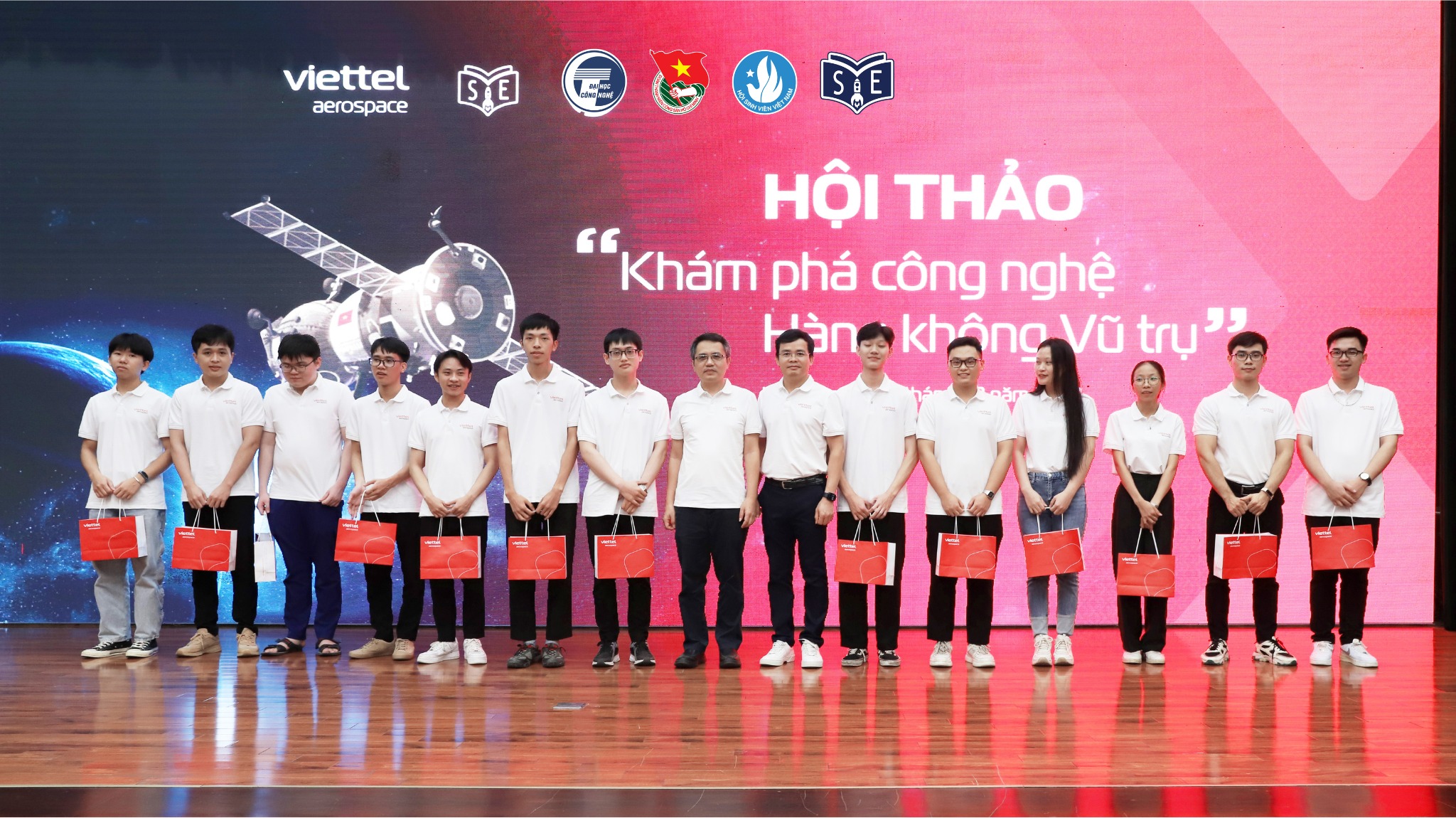 Sinh viên ngành Công nghệ Hàng không vũ trụ tham dự hội thảo “Khám phá công nghệ Hàng không vũ trụ” do Viện Công nghệ Hàng không Vũ trụ, trường ĐH Công nghệ phối hợp với Viện Hàng không Vũ trụ Viettel tổ chức