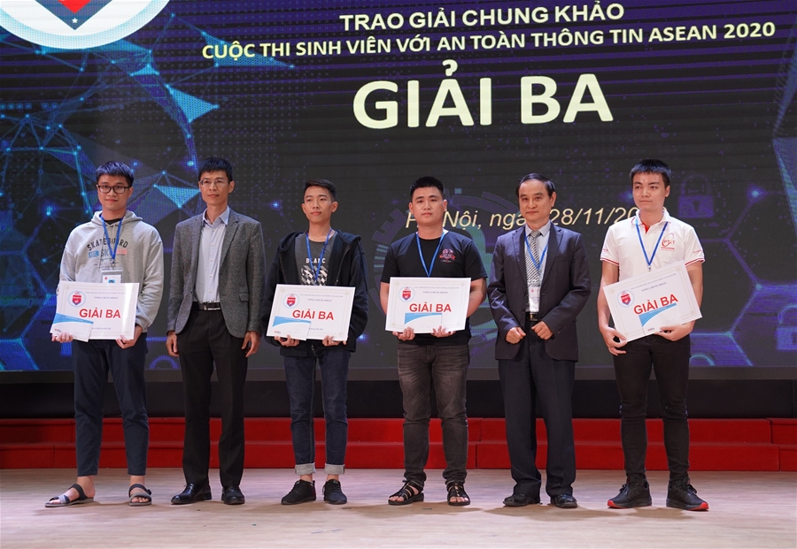 Sau 8 giờ thi đấu căng thẳng với 1.600 điểm, đội Pawsitive của Trường Đại học Công nghệ (ĐHCN), Đại học Quốc gia Hà Nội gồm sinh viên Đinh Quang Vũ, Lê Trần Hải Tùng, Nguyễn Cao Bảo Long, Phan Công Hậu đã giành giải Ba tại Vòng chung khảo cuộc thi “Sinh viên với An toàn thông tin ASEAN 2020”, vào ngày 28/11/2020.