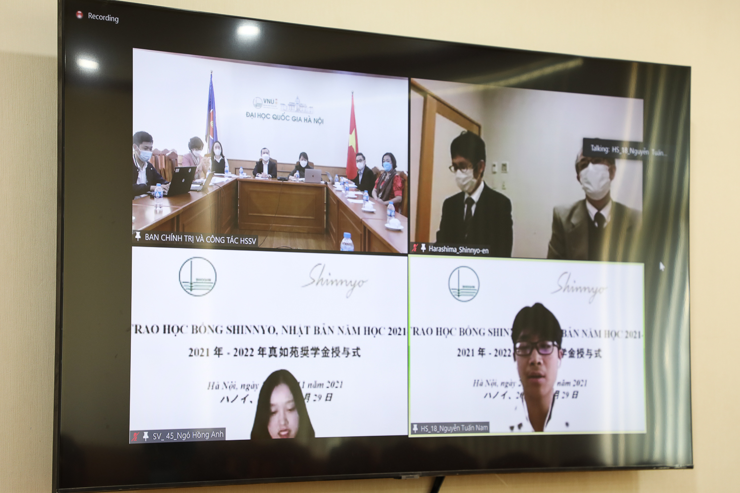 Do ảnh hưởng của dịch covid 19 lễ trao học bổng Shinnyo, Nhật Bản năm học 2021-2022 được tổ chức theo hình thức trực tuyến