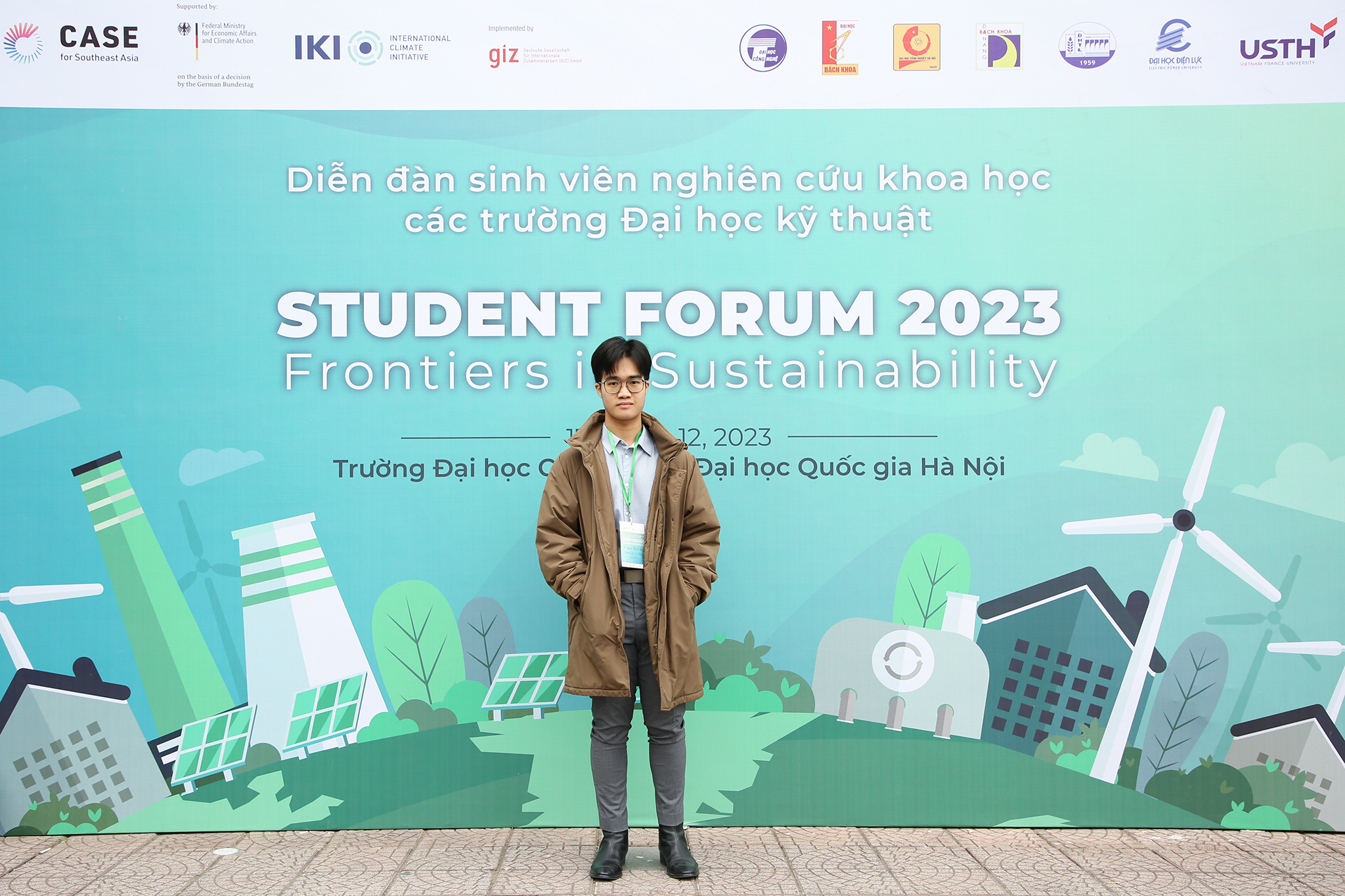 Lần đầu tiên được tham gia và trực tiếp báo cáo kết quả nghiên cứu tại Student Forum 2023, sinh viên ngành Kỹ thuật năng lượng Đoàn Minh Quân (QH -2021-I/CQ, khoa Vật lý kỹ thuật và Công nghệ Nano, Trường Đại học Công nghệ) rất mong chờ vào sự kiện lần này. Với mục tiêu được học hỏi thêm từ các bạn cùng chuyên ngành đến từ các trường đại học khác nhau tại Việt Nam, Minh Quân đã rất mong chờ để có cơ hội được trau dồi kỹ năng mềm như làm việc nhóm và thuyết trình. Đặc biệt là, Minh Quân có thể tự tin báo cáo những thành quả nghiên cứu đến nhiều thầy cô và bạn bè ở các trường đại học khác. Báo cáo tại diễn đàn của Minh Quân có nội dung liên quan tới vật liệu bền vững cho vật liệu xây dựng và từ đó giảm phát thải khí độc ra môi trường.