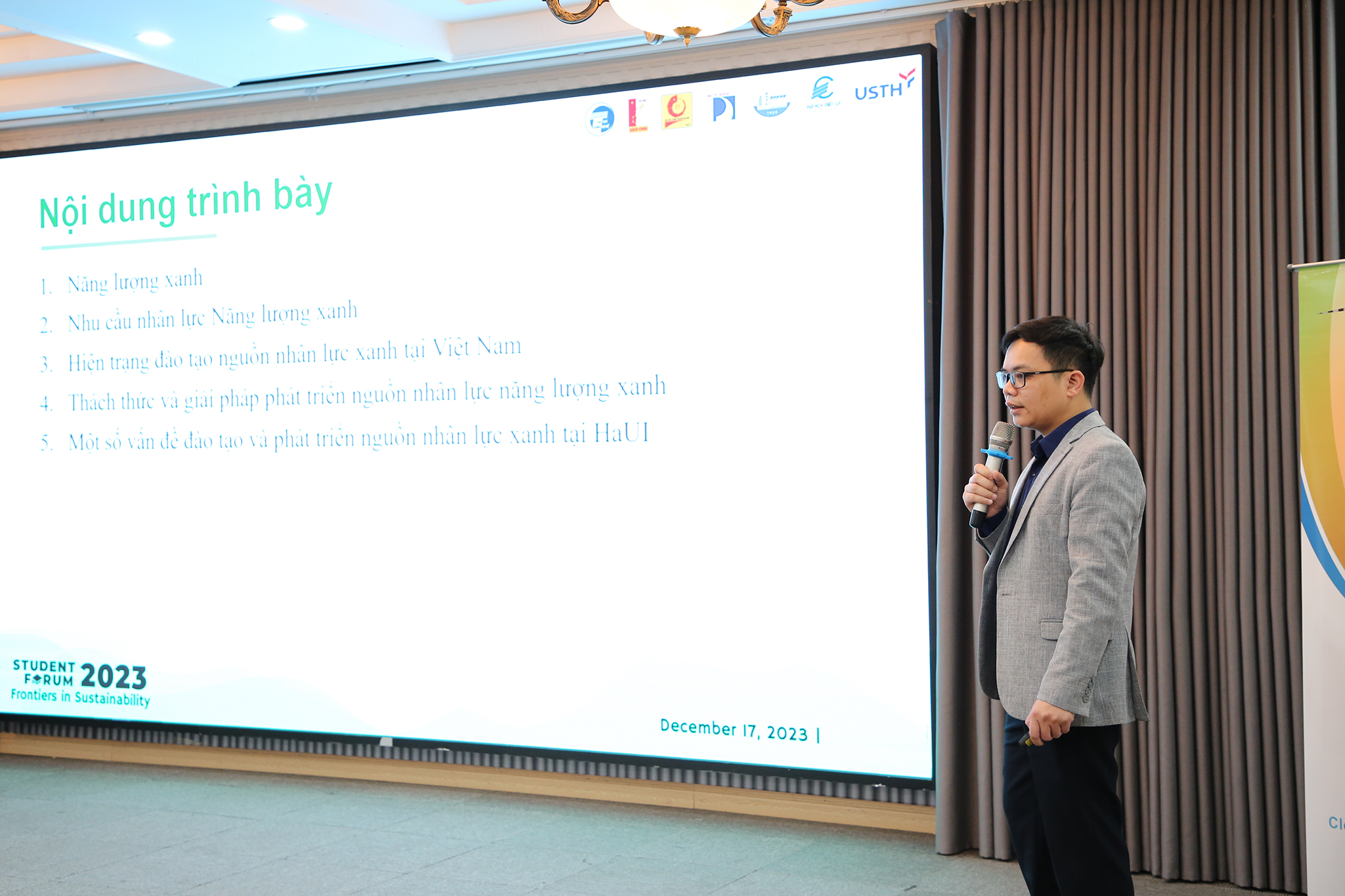 TS. Bùi Văn Huy – Khoa Điện, Trường Đại học Công Nghiệp Hà Nội trình bày về “Đào tạo và nâng cao chất lượng nguồn nhân lực đáp ứng yêu cầu phát triển năng lượng xanh”
