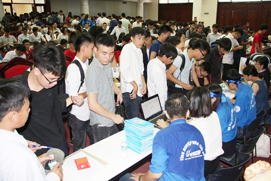 Phụ huynh và thí sinh đến nhập học vào Trường ĐHCN