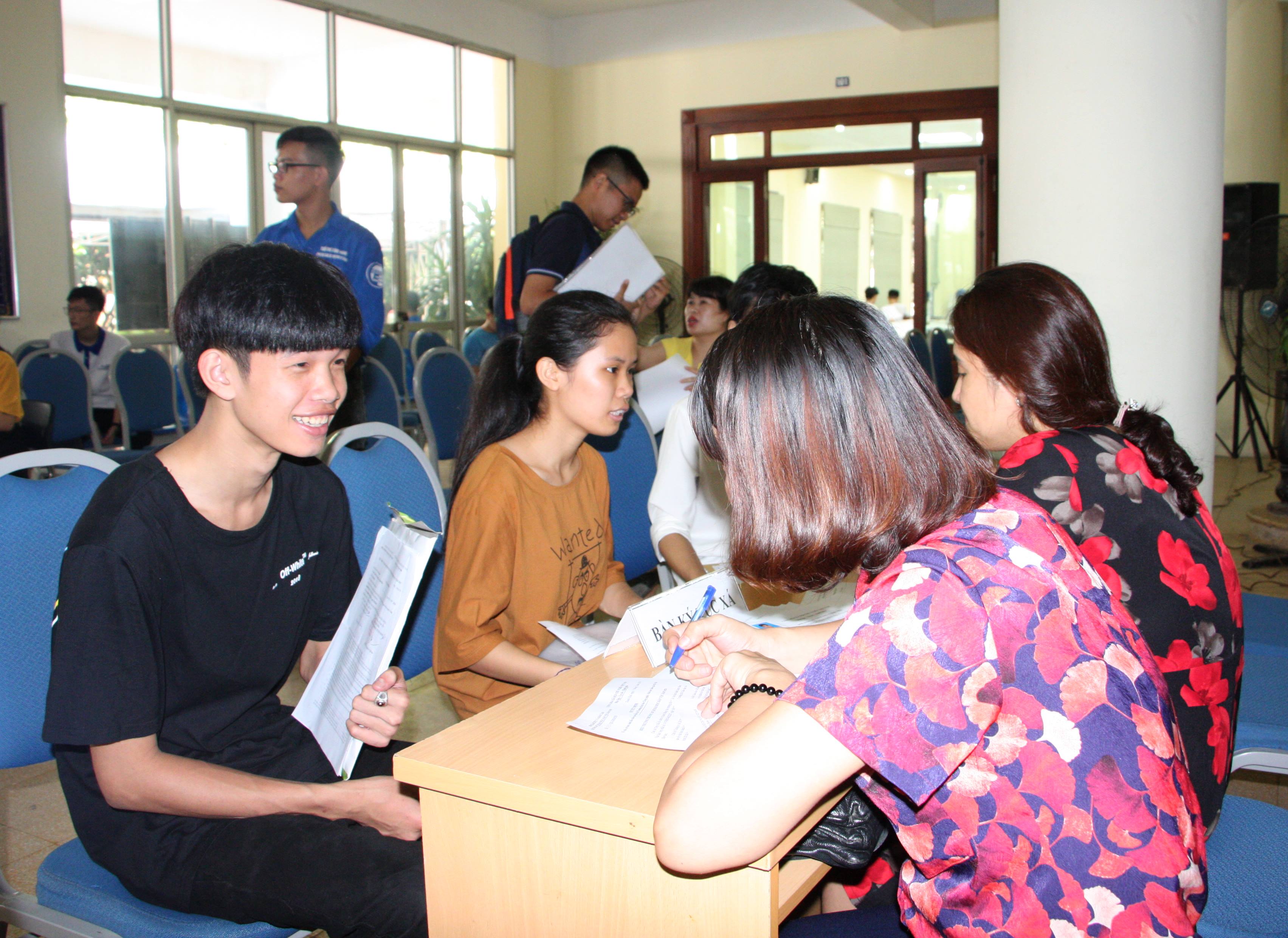 Trong thời gian làm thủ tục nhập học, lực lượng sinh viên tình nguyện được phân công hỗ trợ các tân sinh viên trong quá trình làm thủ tục, lực lượng này đã rất năng động, nhiệt tình giúp đỡ phụ huynh và tân sinh viên bằng nhiều hoạt động thiết thực như: Hướng dẫn phụ huynh và sinh viên đến địa điểm làm thủ tục, ghi thông tin trên các giấy tờ, hướng dẫn quy trình làm thủ tục nhập học, đăng ký vào ở ký túc xá, đăng ký giáo trình, tài liệu học tập,…