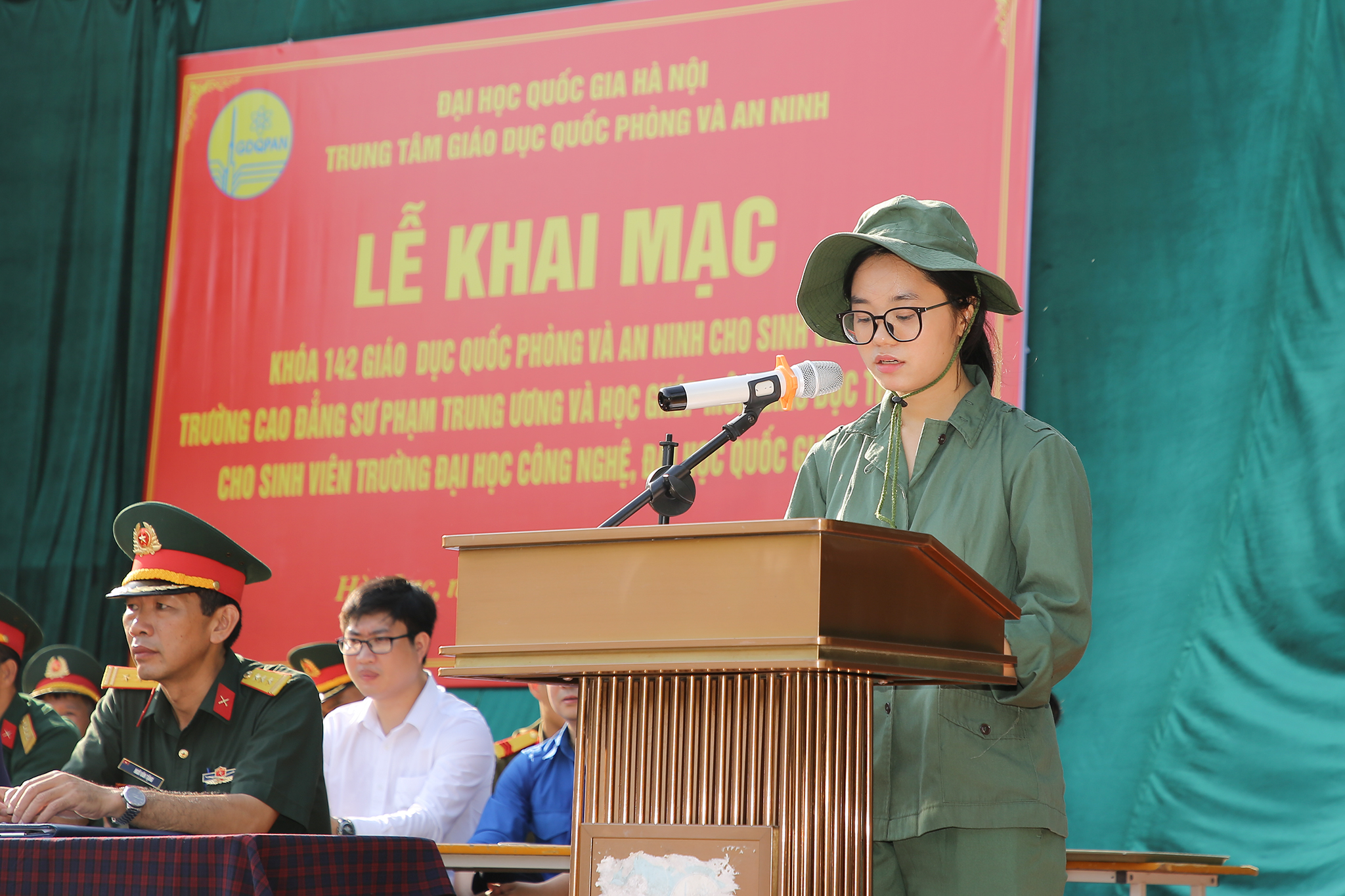 Đại diện cho sinh viên tham gia lễ khai giảng, sinh viên Nguyễn Thị Thái Dương (khoa Điện tử viễn thông), thuộc tiểu đội 1- trung đội 1- đại đội 7 cùng với 2.000 sinh viên UET sẽ thực hiện nghiêm túc các chỉ thị, nhiệm vụ, yêu cầu của khóa học; tích cực học tập, chấp hành nghiêm kỷ luật và quy chế giáo dục; tích cực rèn luyện, tu dưỡng phẩm chất đạo đức, tính tổ chức, kỷ luật trong sinh hoạt tập thể; giữ gìn mối đoàn kết trong đơn vị, thực hiện nếp sống văn minh, lịch sự trong giao tiếp và ứng xử, quyết tâm hoàn thành xuất sắc khóa học