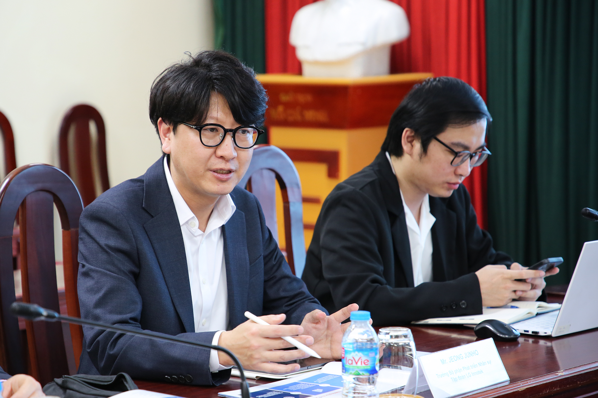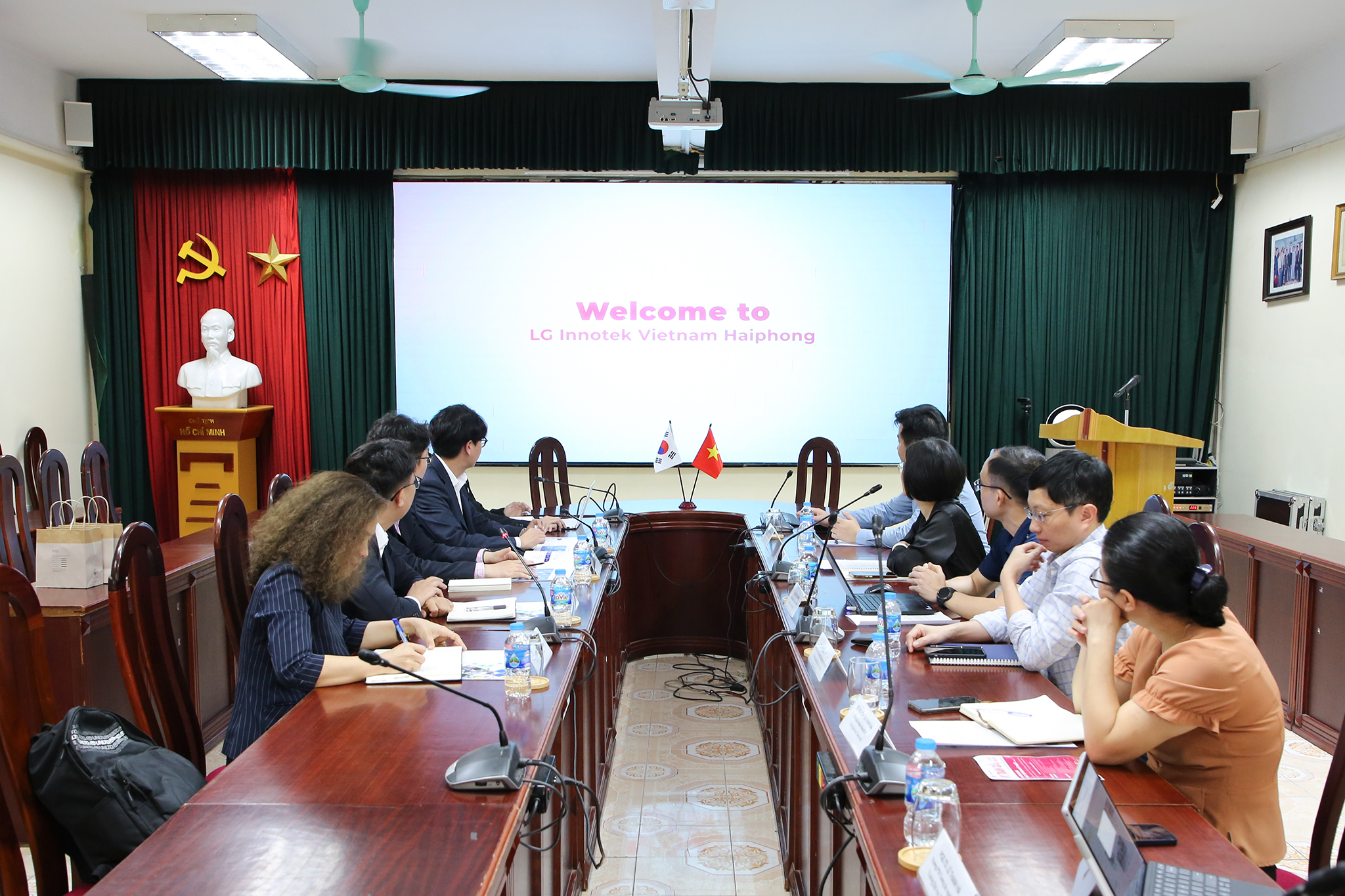 Ông Jeong Junho – Trưởng Bộ phận phát triển nhân sự (Tập đoàn LG Innotek) cho biết, Công ty TNHH LG Innotek Việt Nam Hải Phòng thuộc Tập đoàn LG Hàn Quốc, là công ty đứng đầu toàn cầu trong 12 năm liên tiếp về sản xuất camera module cho các khách hàng hàng đầu thế giới, trong đó có Apple. Trong giai đoạn 2022-2025, Công ty TNHH LG Innotek Việt Nam Hải Phòng sẽ tiếp tục mở rộng sản xuất về quy mô, phát triển nguồn nhân lực chất lượng cao. Công ty đã được biết tới uy tín và thương hiệu của Trường ĐH Công nghệ là một trong những cơ sở giáo dục kỹ thuật hàng đầu cả nước. Qua buổi làm việc hôm nay, đại diện lãnh đạo công ty bày tỏ mong muốn được kết nối hợp tác với Trường ĐH Công nghệ để gia tăng nguồn nhân lực phục vụ cho hoạt động và sự phát triển của công ty. Ông Jeong Junho nhấn mạnh: “Nhu cầu tuyển dụng và phát triển doanh nghiệp của Tập đoàn LG tại Việt Nam sẽ rất mạnh mẽ trong thời gian tới”.
