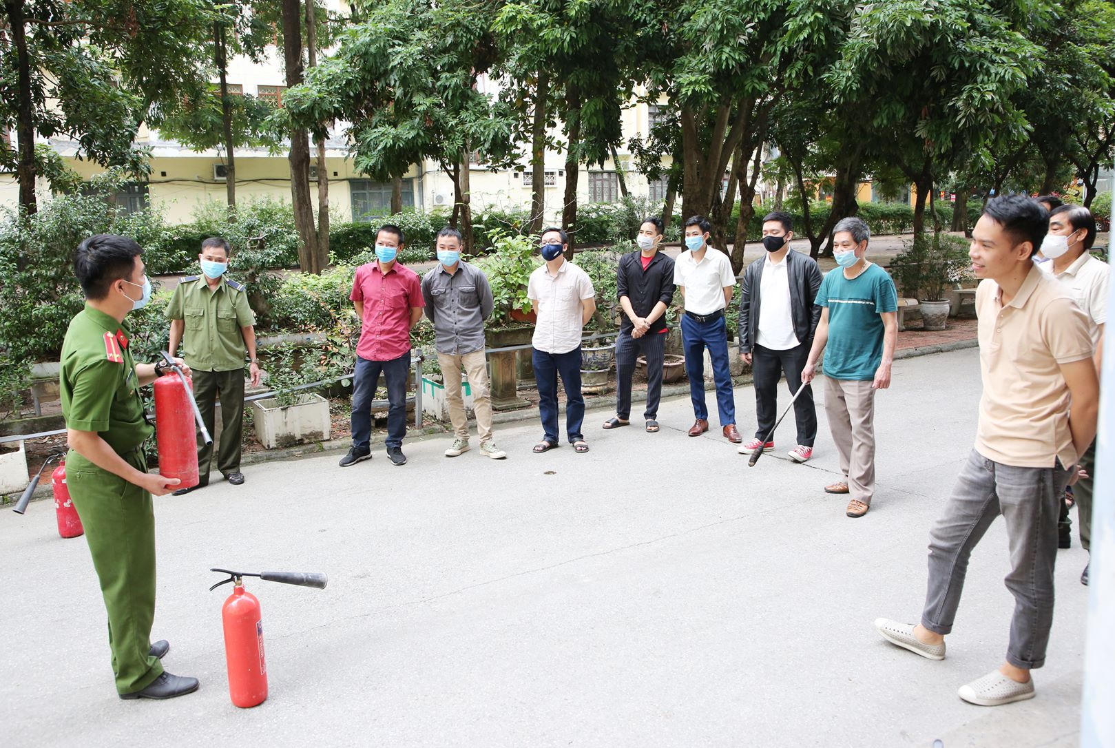 Báo cáo viên Trung úy Nguyễn Anh Tuấn đã tập huấn và hướng dẫn thực hành PCCC đối với cán bộ Nhà trường