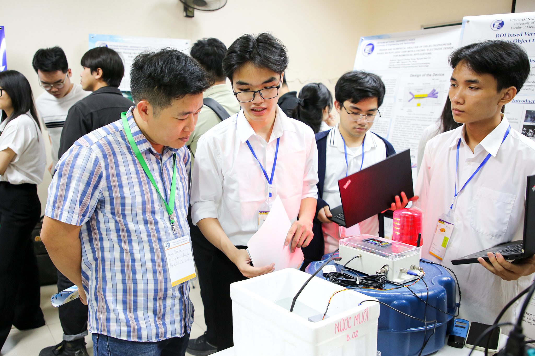 Với sự miệt mài nghiên cứu và sự kế thừa các kết quả trong nhóm nghiên cứu ASPEI trước đó, ba sinh viên Khoa Vật lý kỹ thuật và công nghệ nano gồm sinh viên Đặng Hữu Vinh, Đặng Tuấn Đạt, Vũ Hữu Nhật Tâm đã phát triển thành công thiết bị đo lường tiên tiến, đa chức năng cho giám sát nước, ứng phó với xâm nhập mặn và đạt giải Nhất tại hội nghị sinh viên nghiên cứu khoa học cấp Trường, đồng thời được đề cử tham dự giải thưởng sinh viên nghiên cứu khoa học cấp Bộ Giáo dục và đào tạo.