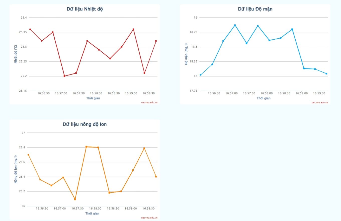 Kết quả thử nghiệm thiết bị đo các chỉ số về nhiệt độ, nồng độ ion và độ mặn