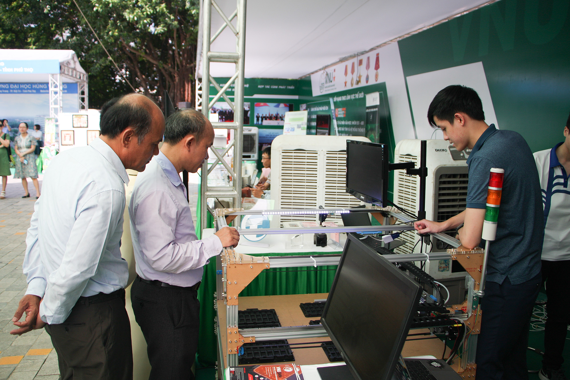 PGS. TS. Bùi Thanh Tùng cho biết, nhóm nghiên cứu đã chủ động hợp tác, kết nối với các doanh nghiệp sản xuất hoạt động trong lĩnh vực công nghệ cao. Thông qua quá trình trao đổi với doanh nghiệp, nhóm nghiên cứu tiếp nhận được các yêu cầu cần cải tiến quy trình công nghệ trong dây chuyền sản xuất công nghiệp, trong đó có khâu kiểm tra sản phẩm là công đoạn quan trọng trước khi quyết định sản phẩm được đưa ra thị trường. Do các thao tác kiểm tra có độ khó, đòi hỏi sự chính xác cao đối với cụm linh kiện gồm các chi tiết quang học, kết nối điện… cần kiểm tra cũng như thiết kế liên tục thay đổi theo các dòng sản phẩm khác nhau, quá trình kiểm tra được lặp đi lặp lại nhiều lần với số lượng sản phẩm cần kiểm tra lớn.Việc sử dụng nhân công phải làm việc liên tục trong thời gian dài, việc thao tác thủ công dễ dẫn đến sai sót do mệt mỏi, mất tập trung. Các doanh nghiệp vì thế mong muốn áp dụng tự động hóa vào quá trình kiểm tra kết quả sản phẩm nhằm tránh ảnh hưởng của yếu tố tâm lý con người đến hiệu quả sản xuất.
