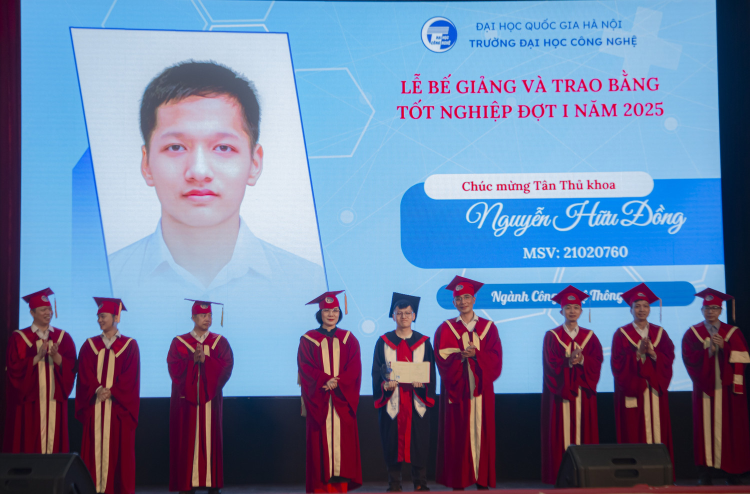 Sau 4 năm học tập miệt mài tại Trường Đại học Công nghệ, khi biết bản thân là thủ khoa tốt nghiệp xuất sắc ngành Công nghệ thông tin, đồng thời là á khoa toàn khóa ra trường đợt 1 năm 2025 của nhà trường, Đồng rất vui, xúc động và bất ngờ.
