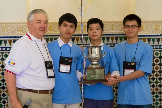 Sinh viên Đỗ Xuân Việt (đứng thứ hai bên trái ảnh), Nguyễn Đức Nam (đứng thứ ba bên trái ảnh), Nguyễn Phan Quang Minh (đứng thứ tư bên trái ảnh) nhận giải thưởng tại Vòng chung kết toàn cầu ACM/ICPC ở Marôc