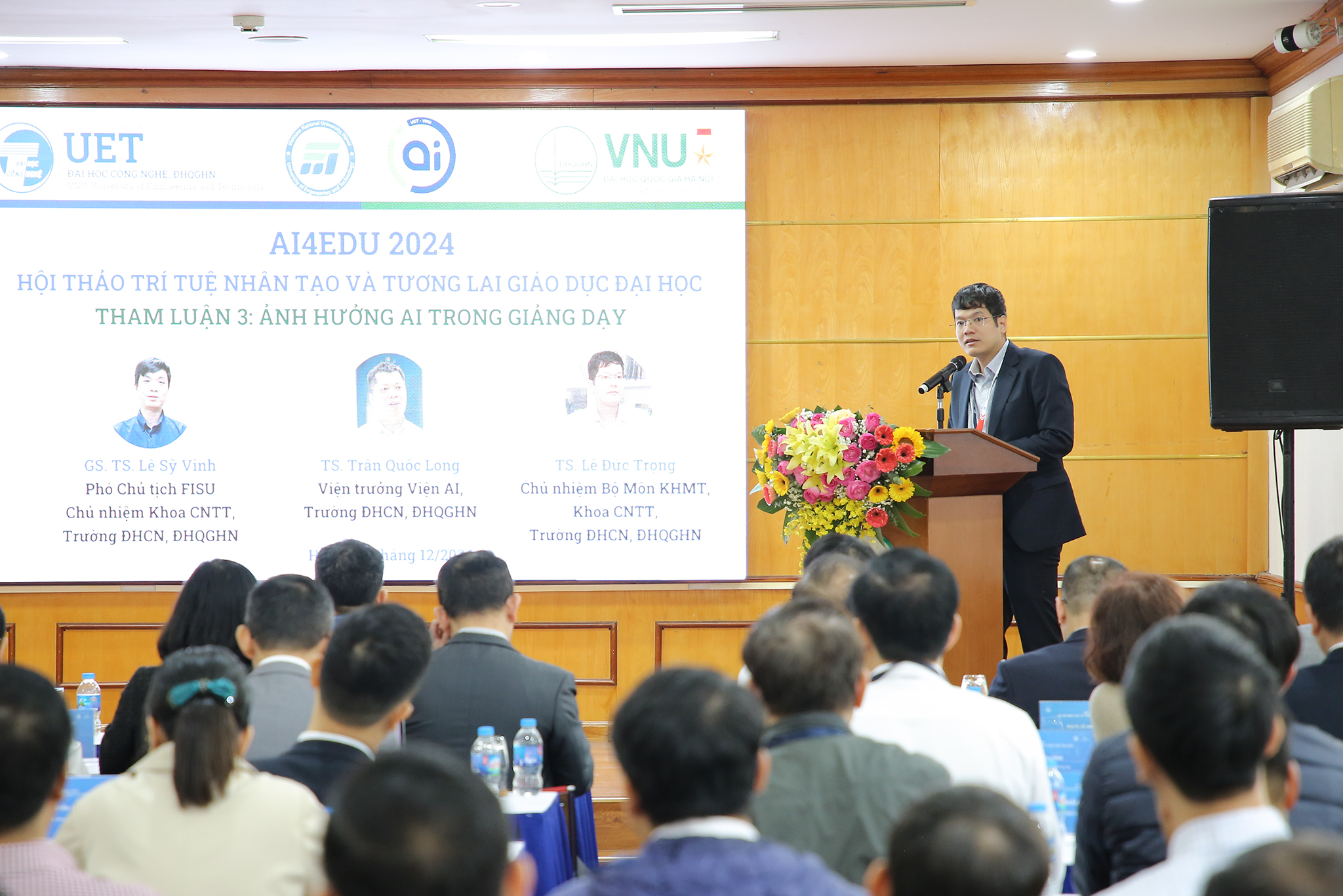 TS. Lê Đức Trọng (Trường ĐH Công nghệ, ĐHQGHN) trình bày tham luận “Ảnh hưởng AI trong giảng dạy”